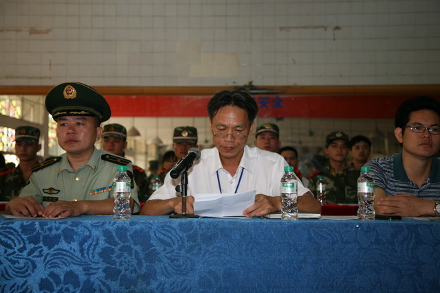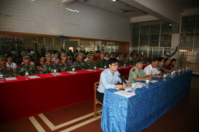 八月的校园,喜庆非凡,收获的喜悦在枝头满溢芳香。来自全区各地的莘莘学子齐聚广西商贸技工学校准备迎接新学期的到来。8月28日,我校隆重举行2011级新生国防教育大会暨军训动员大会。上午九时,开学典礼在雄壮的《义勇军进行曲》中拉开序幕,副校长何佳林,武警广西总队第二支队二大队的教官出席了大会,参加典礼的还有各科室和相关职能部门的领导、老师代表以及2011级全体新同学。大会由学生科科长梁朝阳主持。