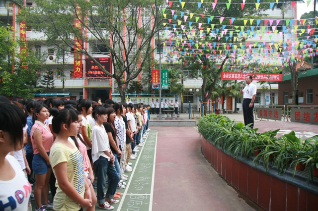 最后,何佳林副校长分别对近日的德育、军训等事项作了具体的安排,希望同学们在新的学期里改正不良的学习习惯、培养良好的道德情操,师生共同创造和谐校园。