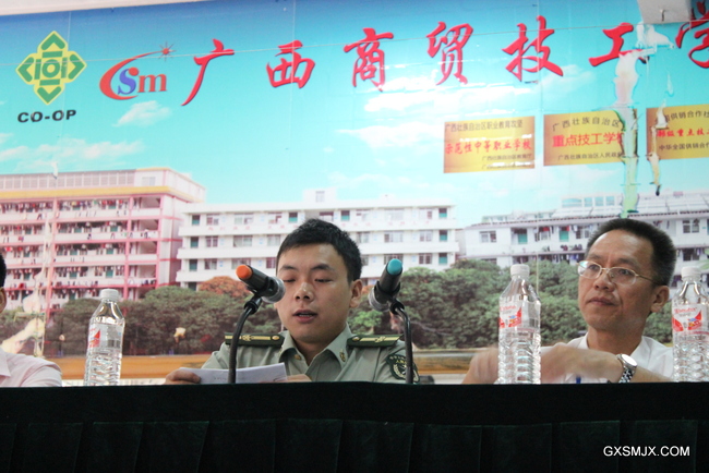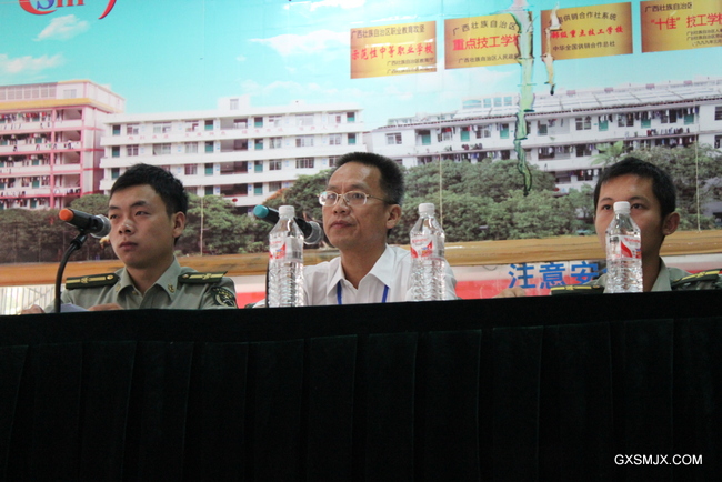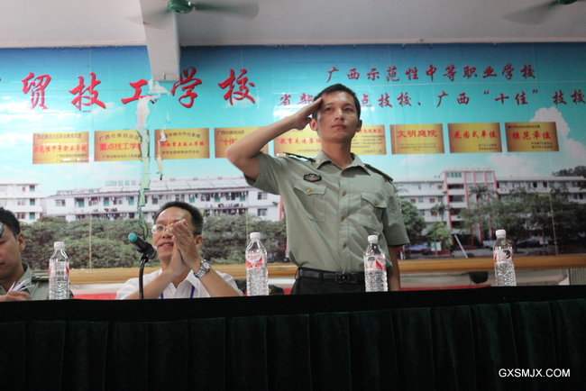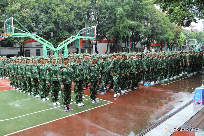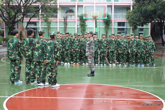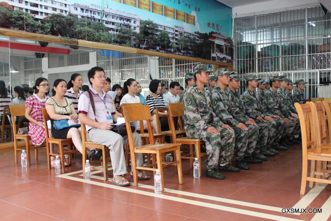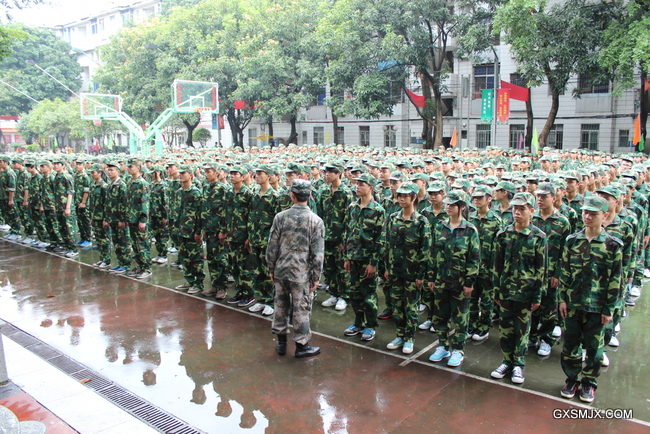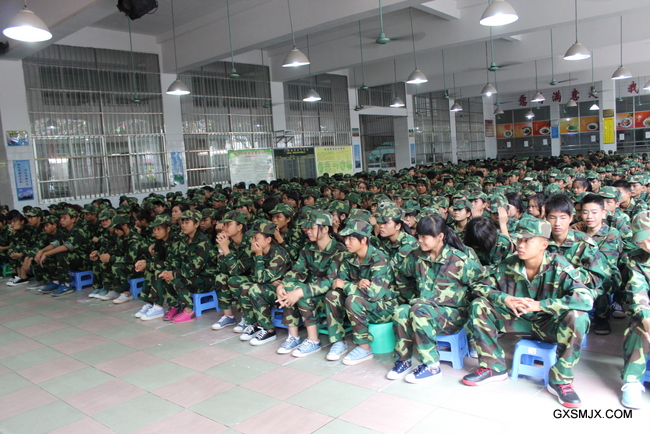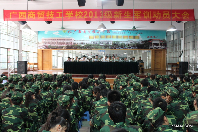 从今天起,2013级新生就要进行为期一周的入学军训教育活动了。早上八点,全体新生身穿崭新的军装,按班级整齐坐在学校礼堂参加新生军训动员大会。何佳林副校长主持会议,他首先强调新生参加军训的重要性,要求新生在军训过程中培养顽强坚韧的精神。今年的新生军训由青少年新黄埔军校的教官负责,教官朱天情队长向同学们介绍了国防有关知识,说明了新生参加军训的重要意义。最后各教官和所负责的班级进行对接,全校20个新生班级,分为16个训练连队进行军训。