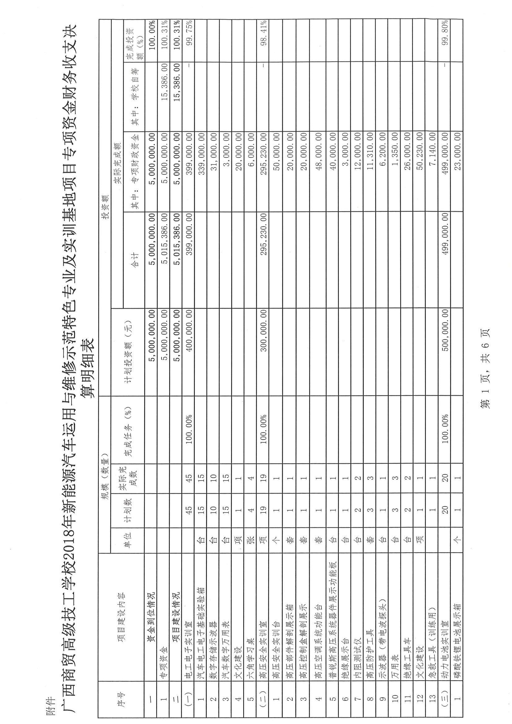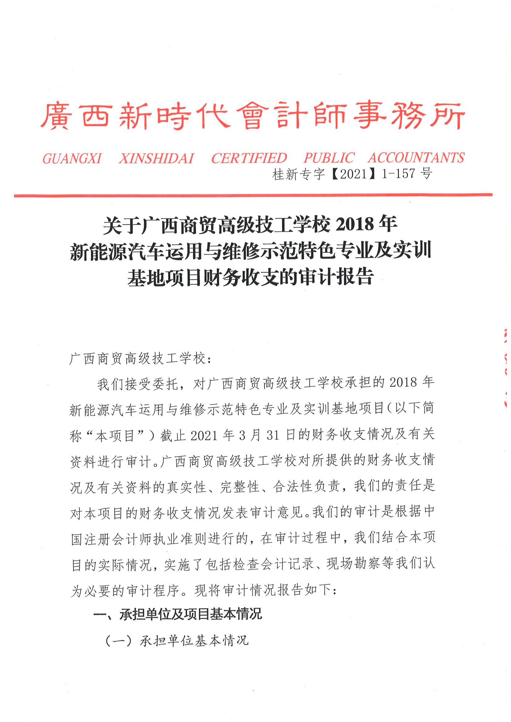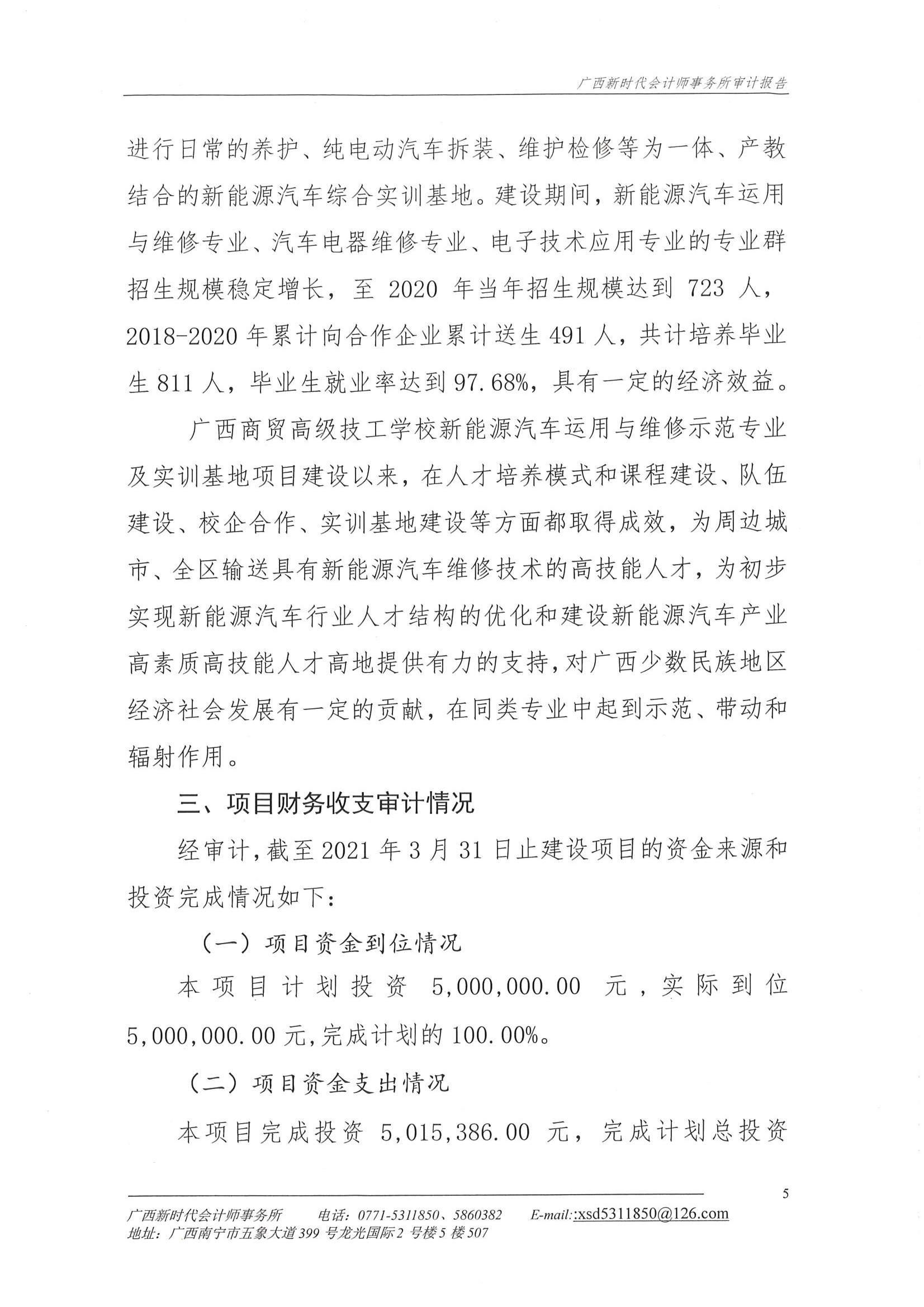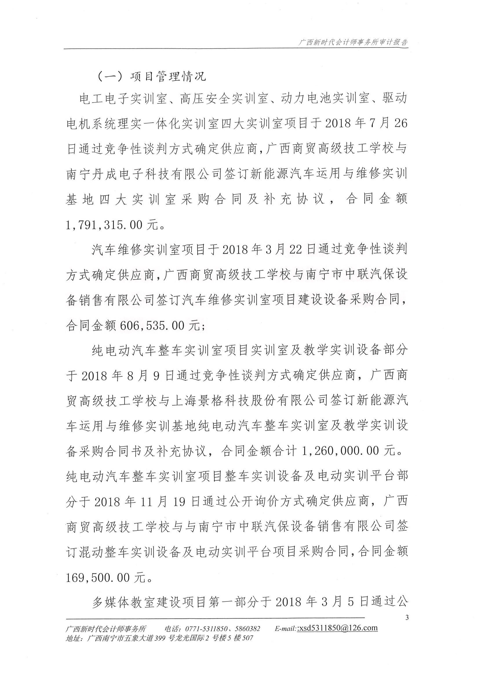 关于广西商贸高级技工学校2018年新能源汽车运用与维修示范特色专业及实训基地项目财务收支的审计报告