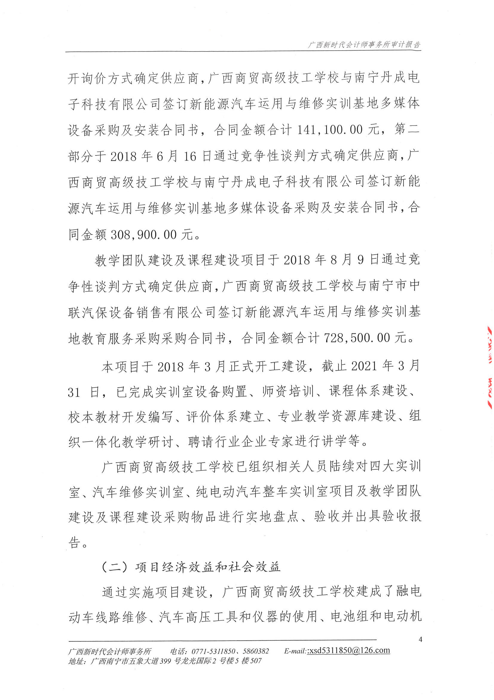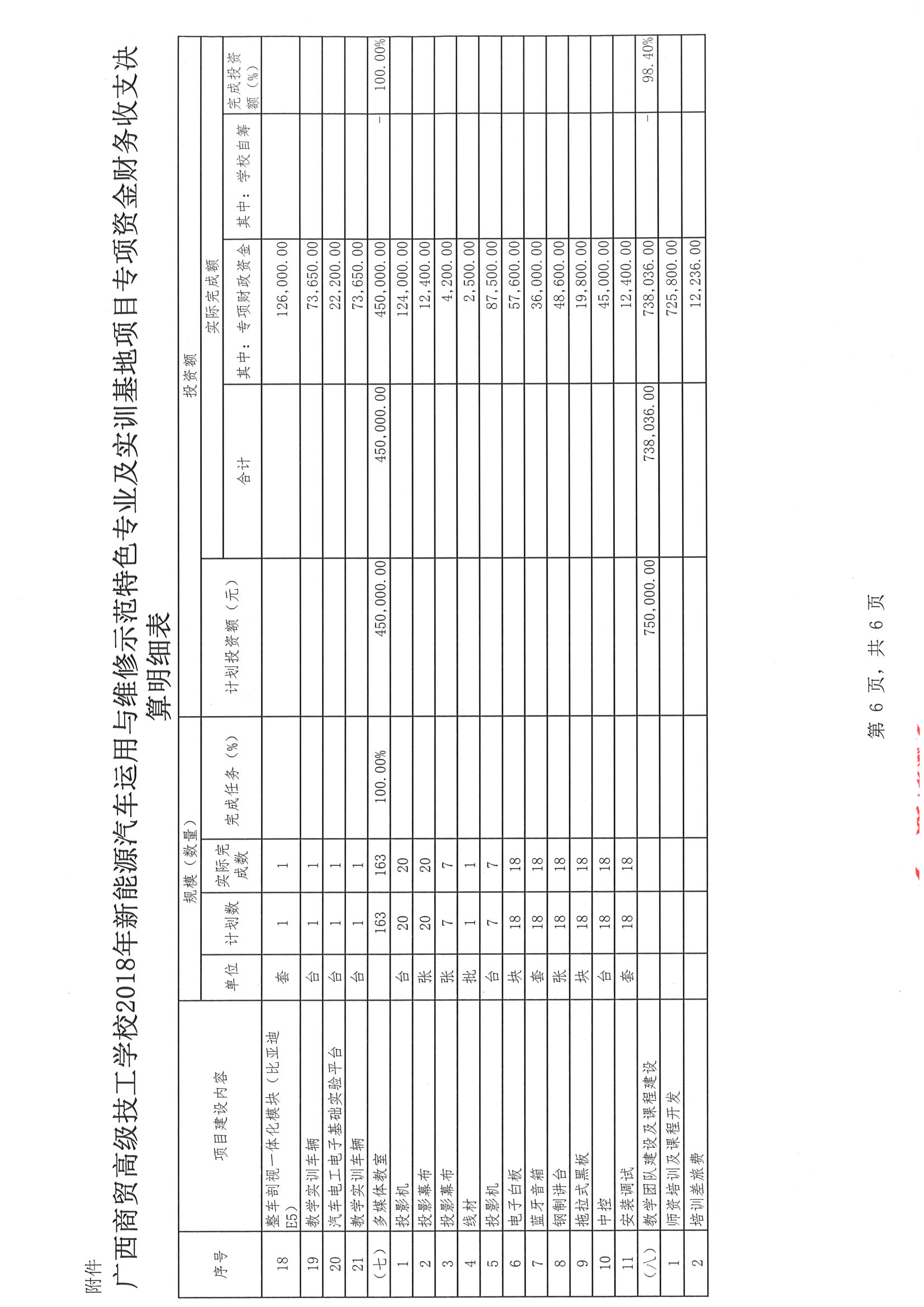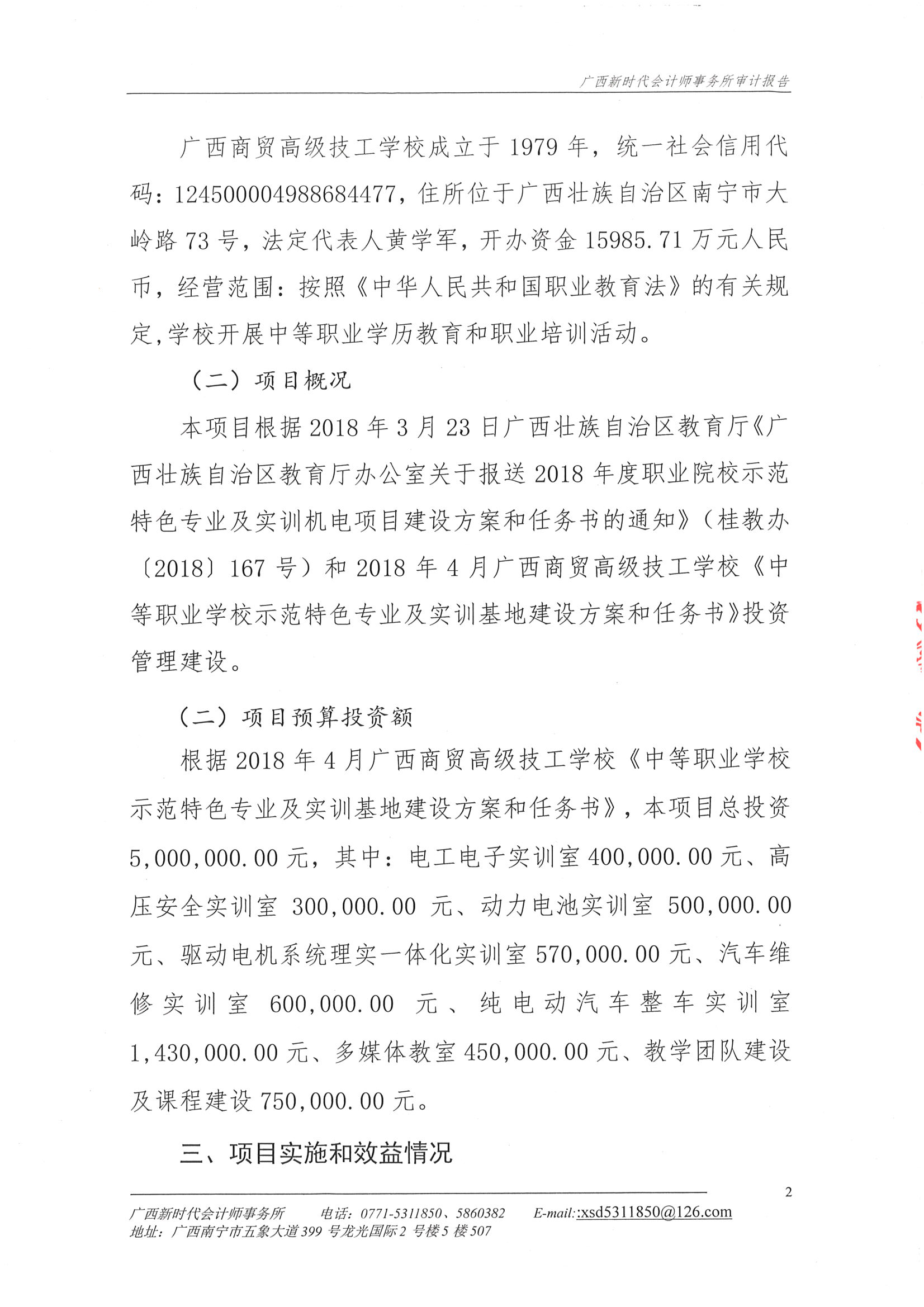 关于广西商贸高级技工学校2018年新能源汽车运用与维修示范特色专业及实训基地项目财务收支的审计报告