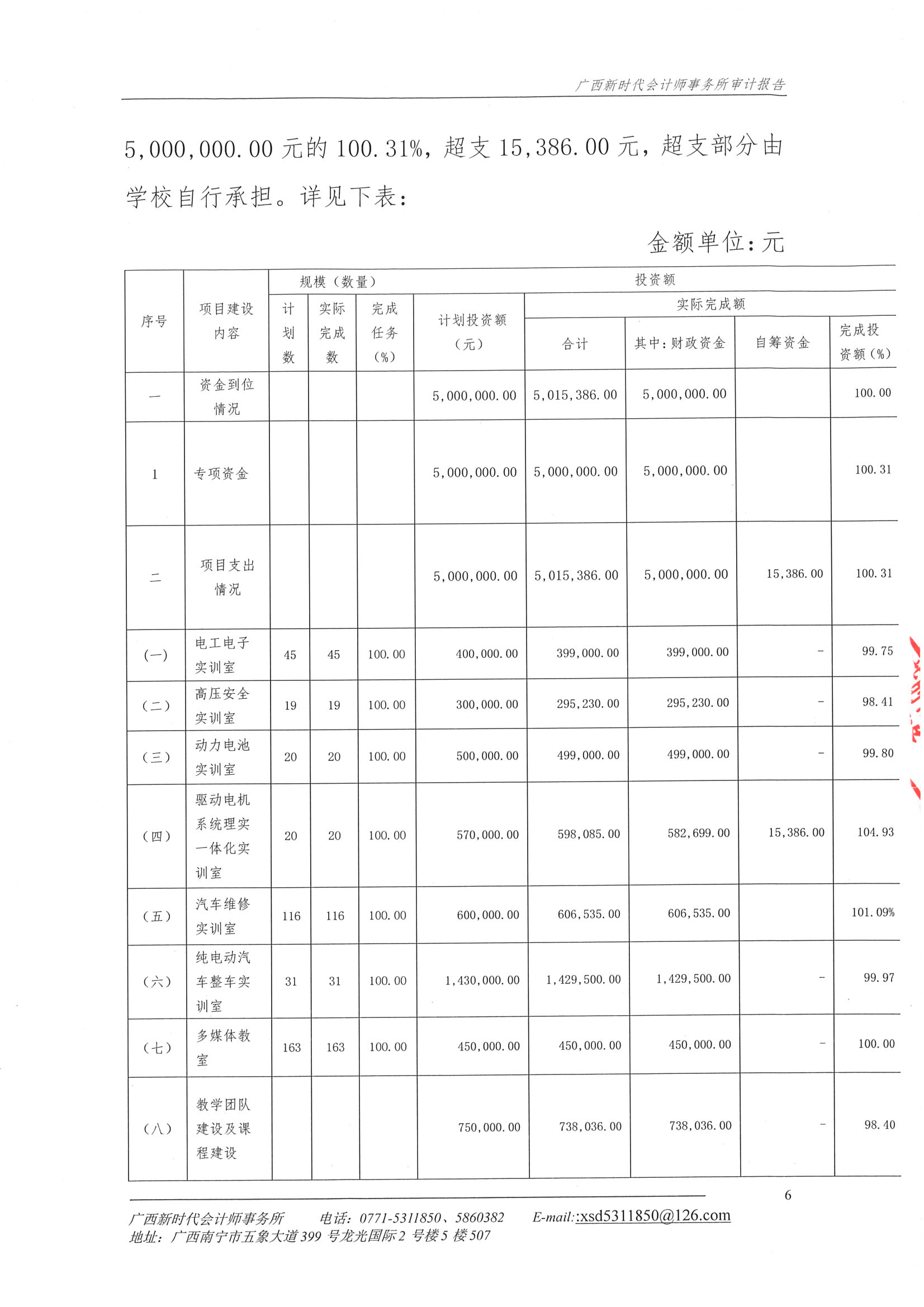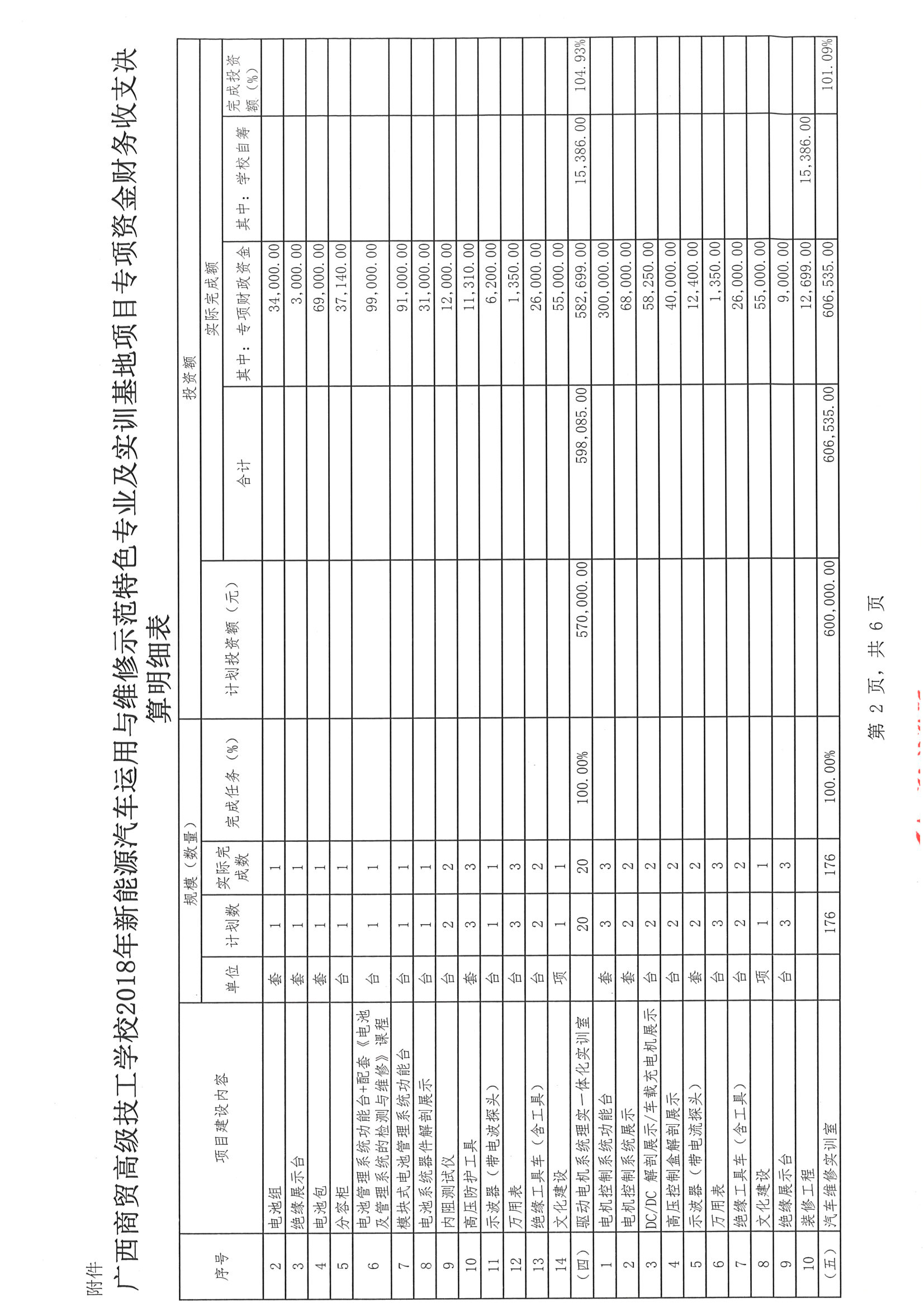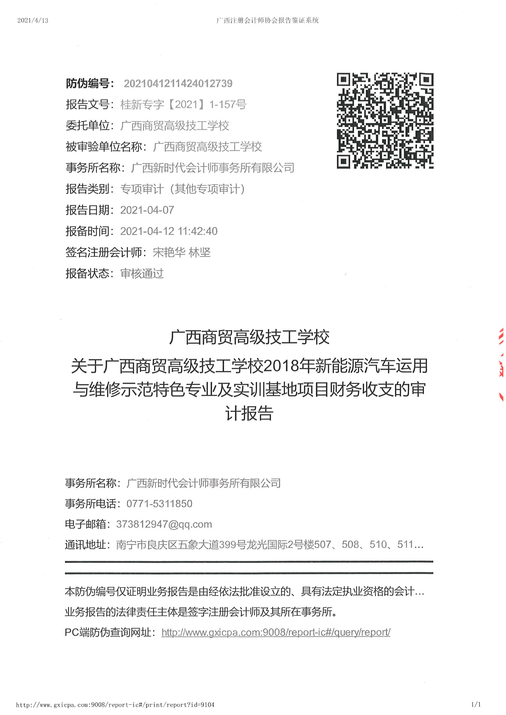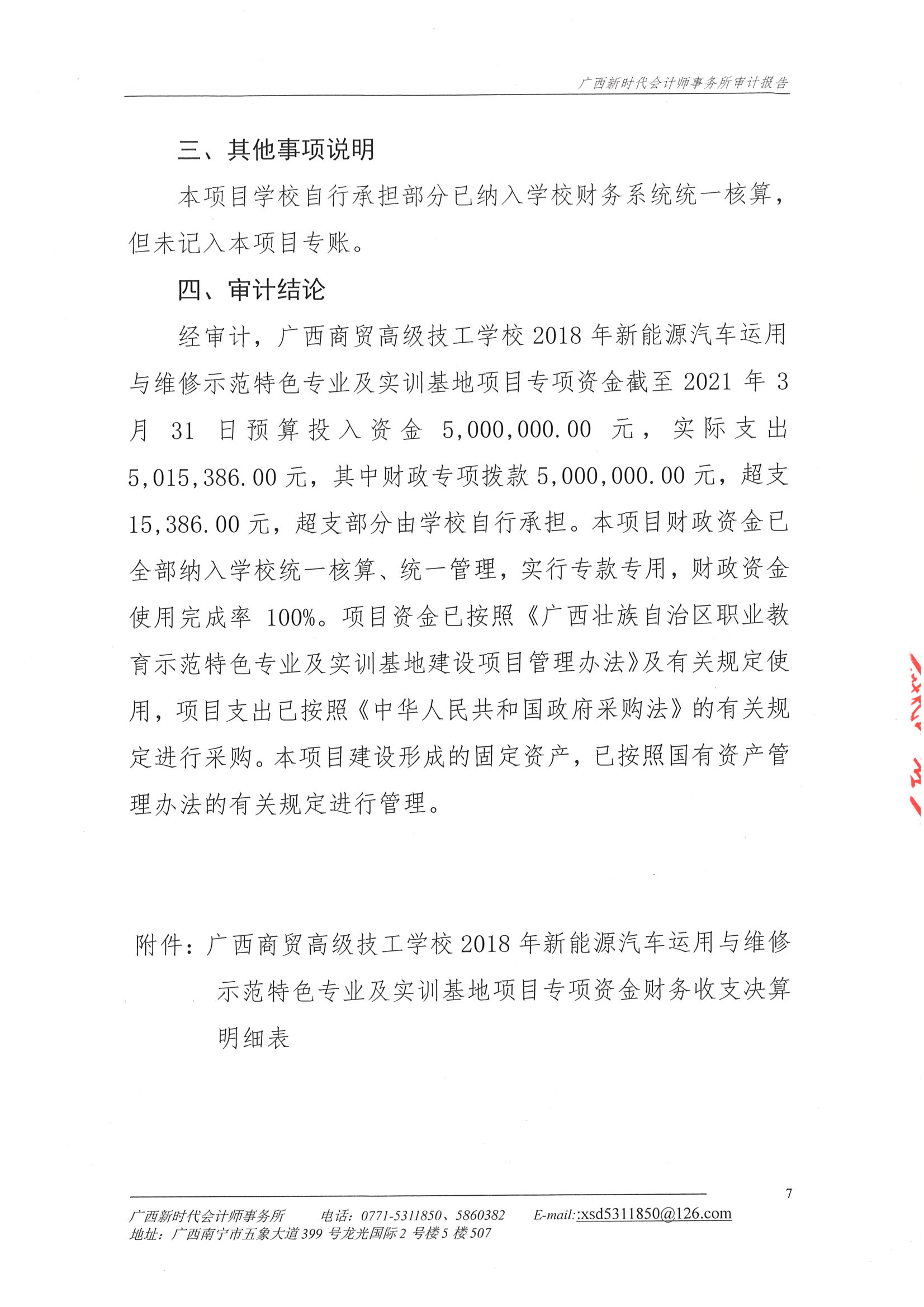 关于广西商贸高级技工学校2018年新能源汽车运用与维修示范特色专业及实训基地项目财务收支的审计报告