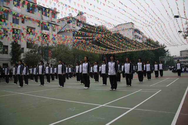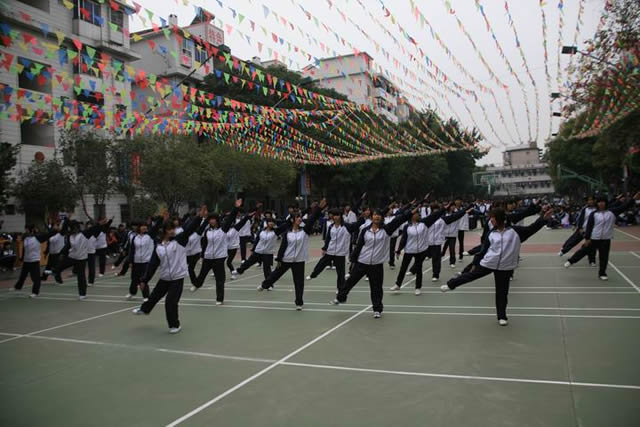 2009年12月9日,我校在校园举行了学生广播体操比赛。比赛从队列、动作、指挥、精神面貌等多方面对各参赛班级的广播体操进行评比。通过比赛,不仅提高了我校学生广播体操的质量,增强了学生的体质,而且加强学生的集体主义荣誉感,提升了班级的凝聚力。学校领导出席了比赛活动并为获奖班级颁了奖。
