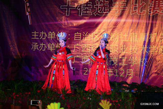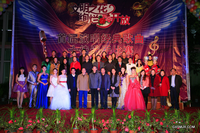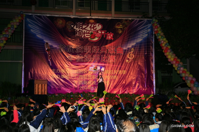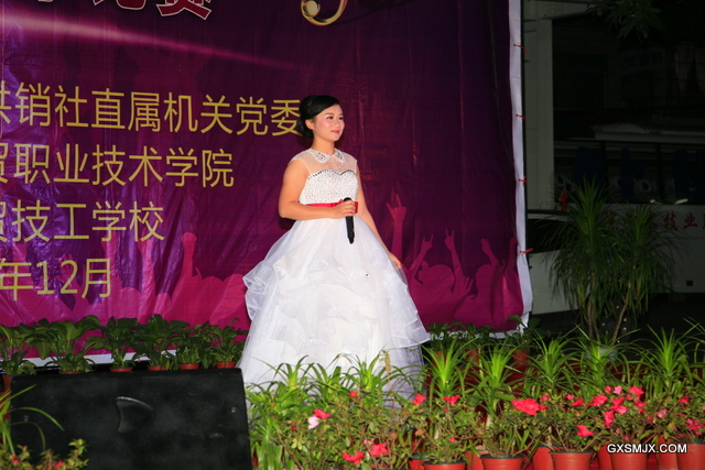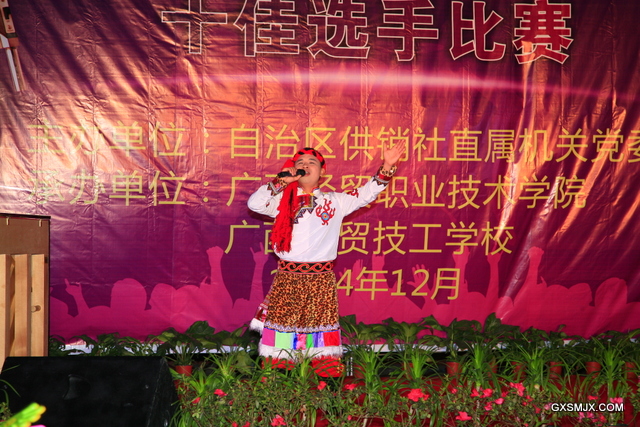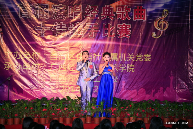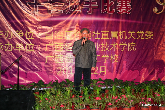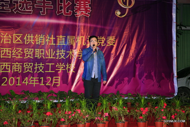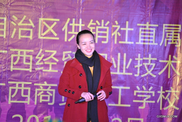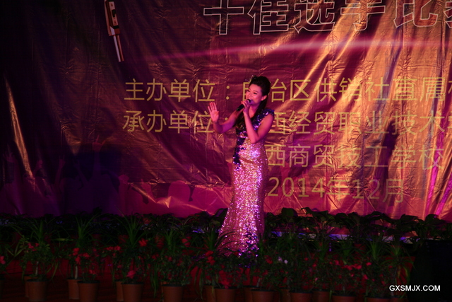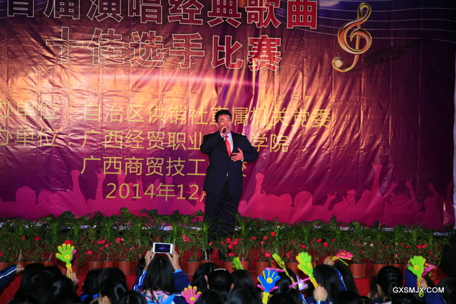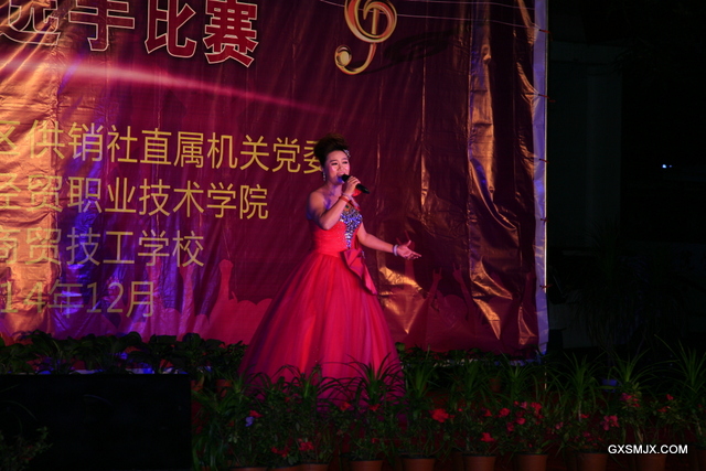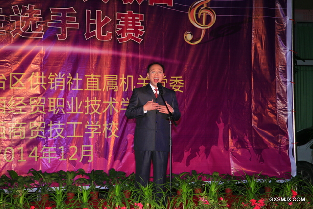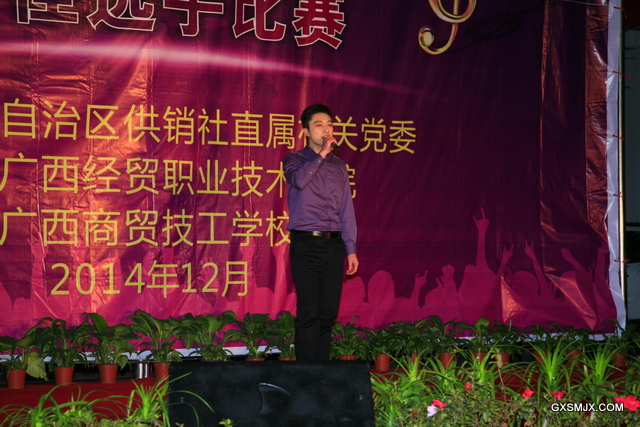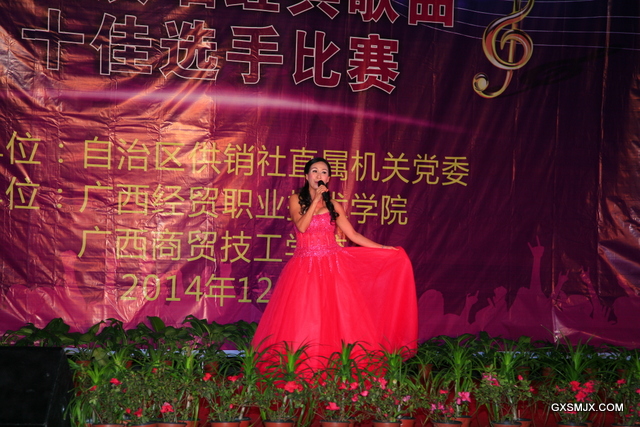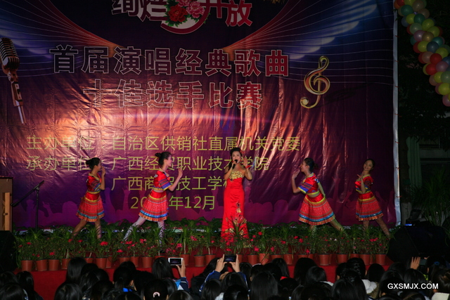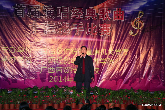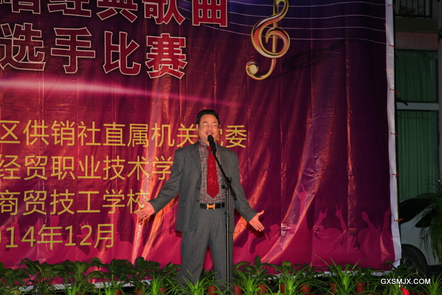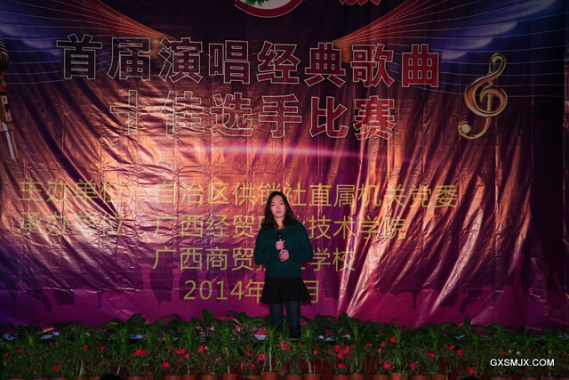 为促进区供销社直属机关精神文明建设,丰富广大干部职工的业余文化生活,进一步调动干部职工特别是青年干部和教师的积极性,增强供销社队伍的凝聚力和战斗力,由自治区供销社直属机关党委主办、广西经贸职业技术学院和广西商贸技工学校承办的首届演唱经典歌曲十佳选手比赛于12月11日晚在我校举行,这是一场以“文明之花,璀璨开放”为主题的演唱比赛,为区社直属机关广大职工搭建一个展示才艺的舞台。区供销社机关党委专职副书记刘为民,广西经贸职业技术学院副院长农星东、院办公室主任龙和文,我校党委书记、校长黄学军、副校长邓坚雄、何佳林,校务委员李春猛,工会主席任其江等领导出席观看比赛。