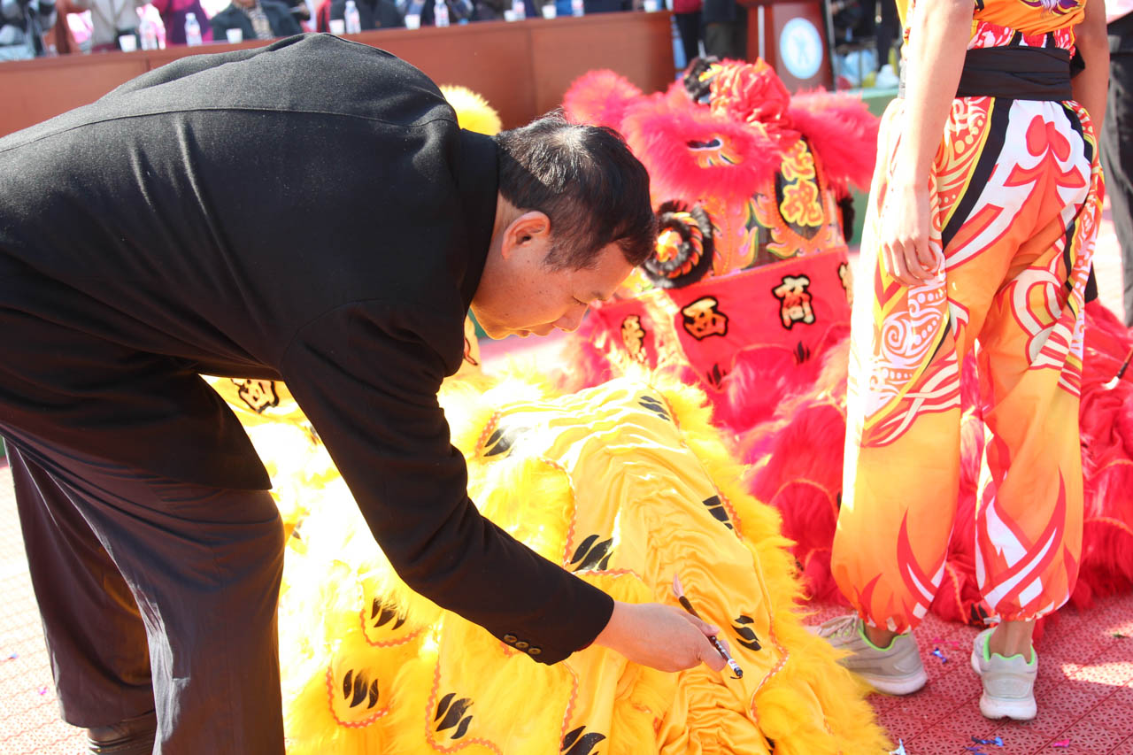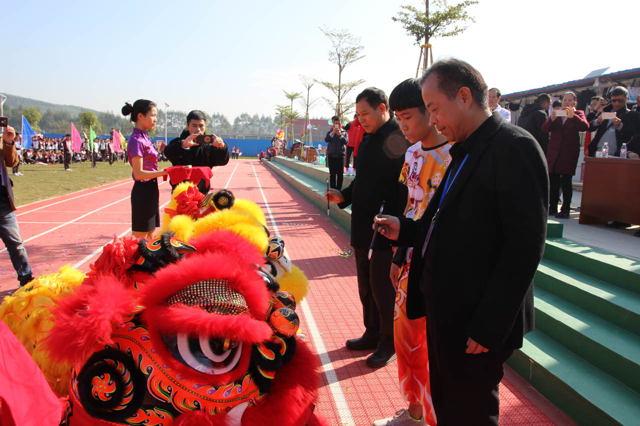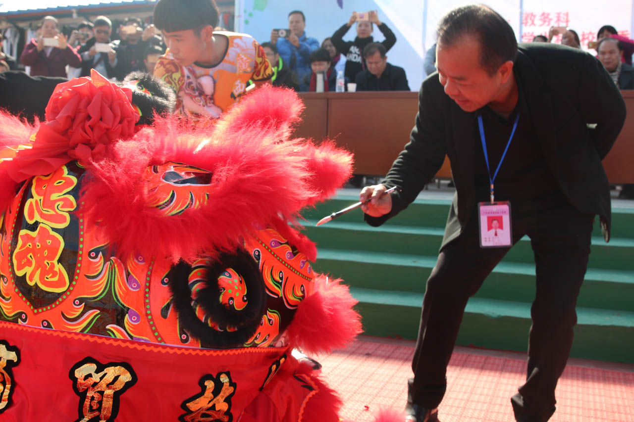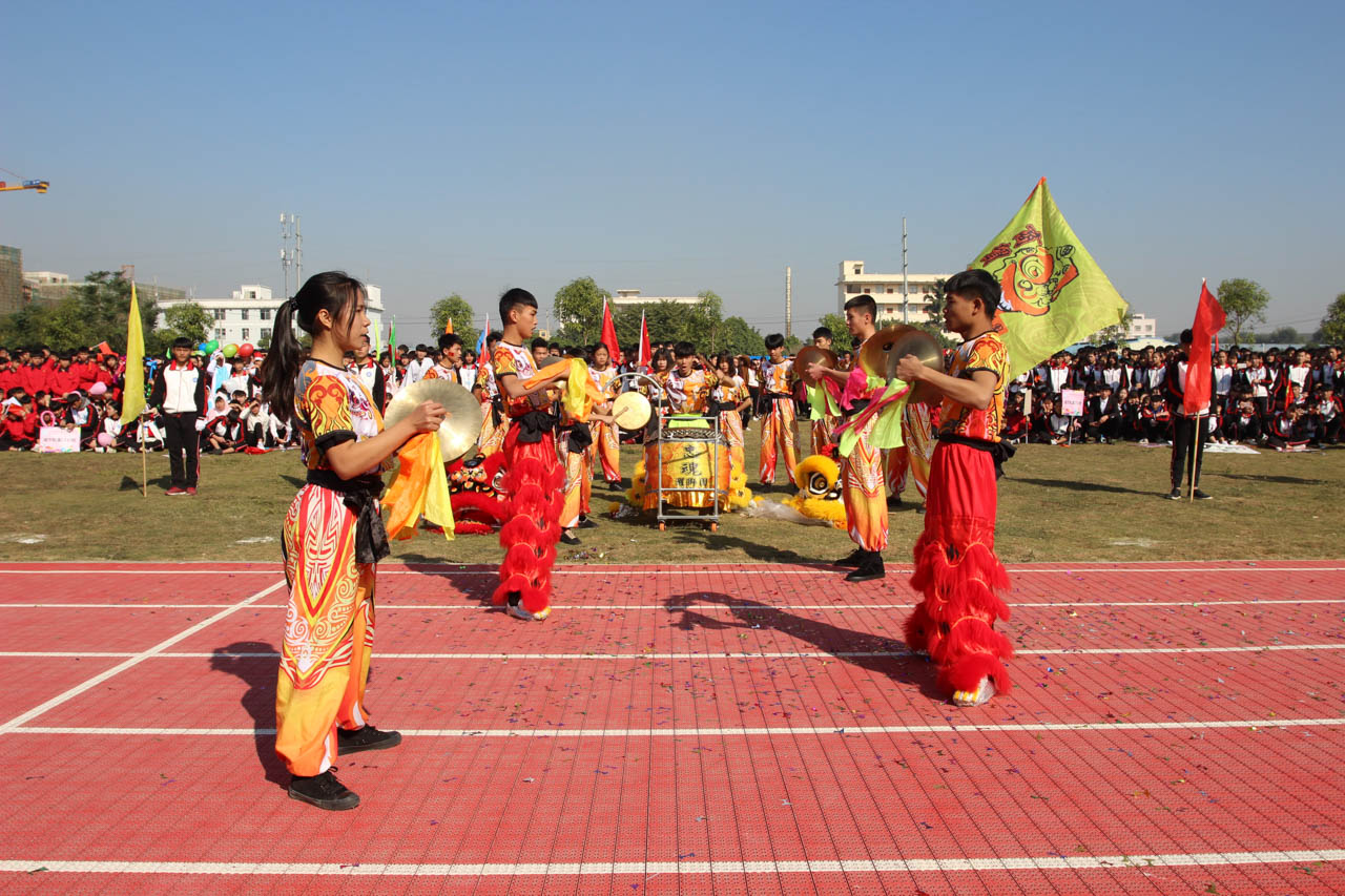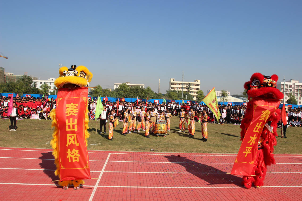 开幕式后的双狮齐现将现场的气氛推向高潮,“赛出水平,赛出风格”的条幅被高高举起;统一着装,动作整齐划一的啦啦操,将青春活力与激情展现;精彩绝伦的武术表演,再次引起全场欢呼。随后,校长黄学军、副校长邓坚雄为醒狮点睛,场面喜庆,寓意学校蓬勃发展。
