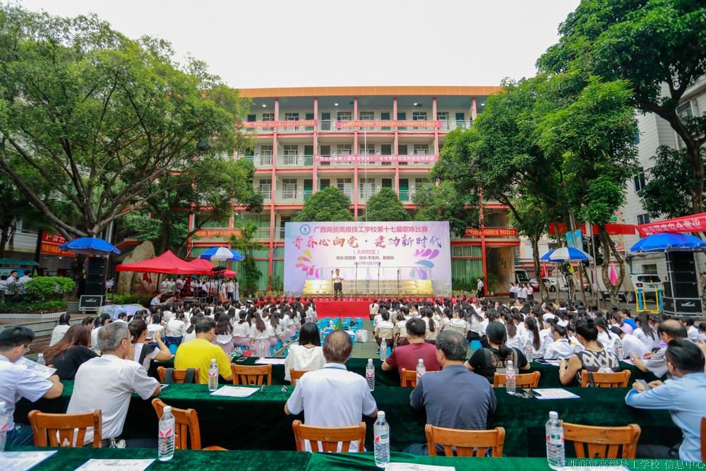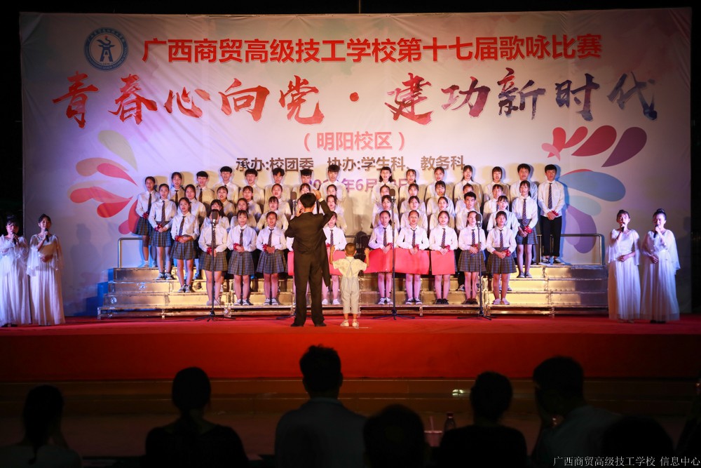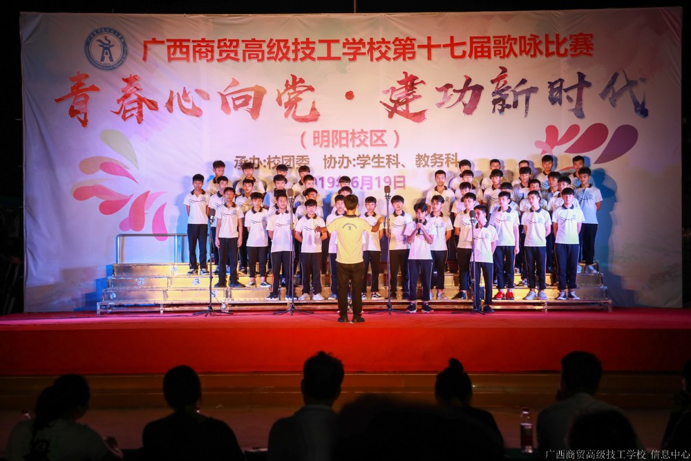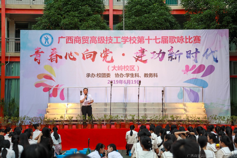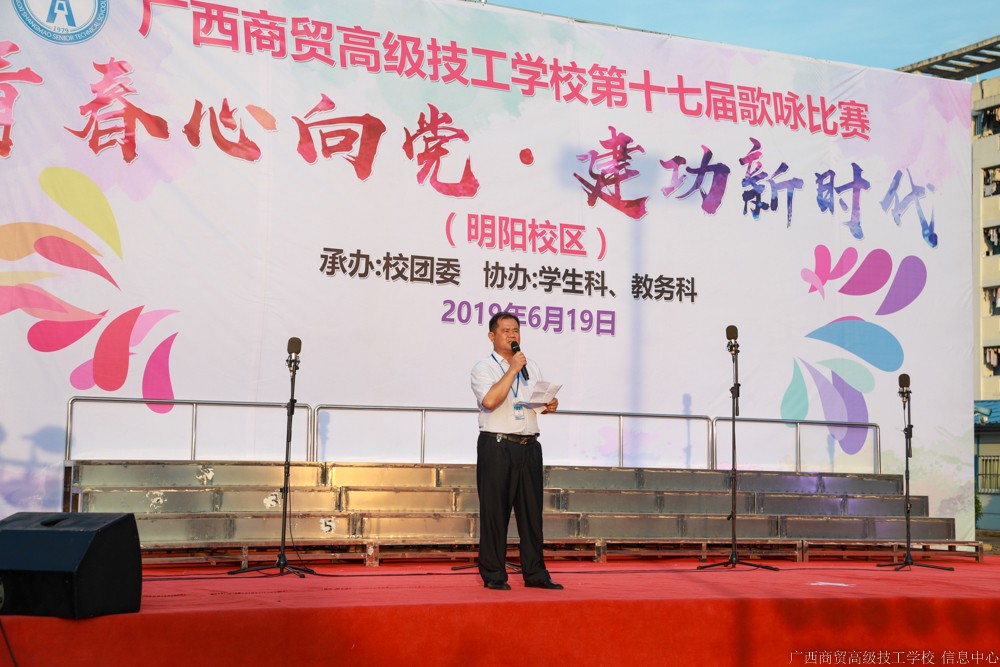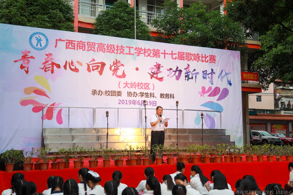 为激发青年学生的集体主义精神和爱国热情,丰富校园文化,充分展示学生的文艺才华和精神风貌,引导我校青年学生以奋发向上的精神风貌迎接新中国成立70周年和五四运动100周年,6月19至20日晚,我校第十七届歌咏比赛先后在明阳校区和大岭校区举行,校长黄学军,副校长邓坚雄、李荣波、何佳林,党委副书记任其江,纪委书记梁朝阳,校长助理何昌武等领导和科室负责人出席本次大赛,与全体师生共同观赛。