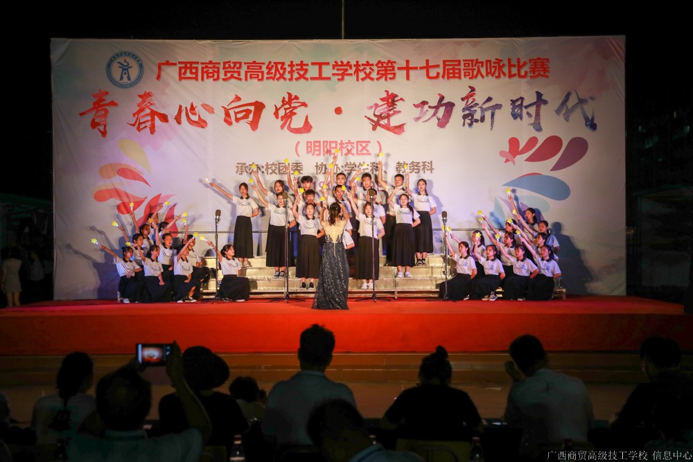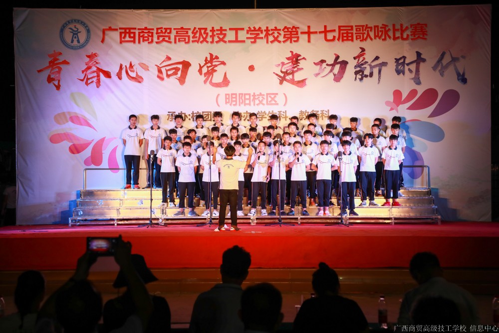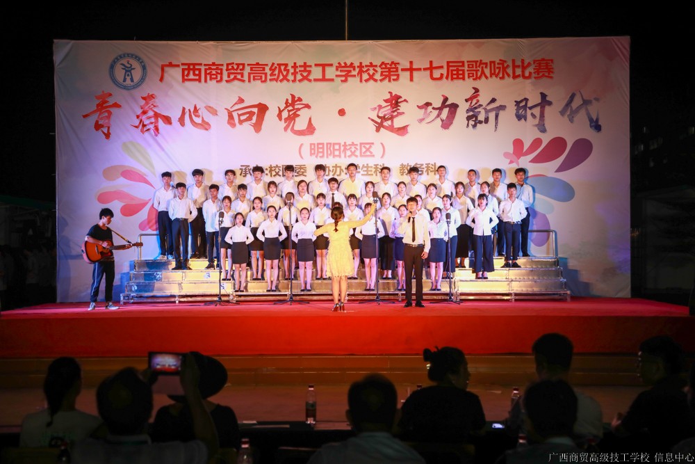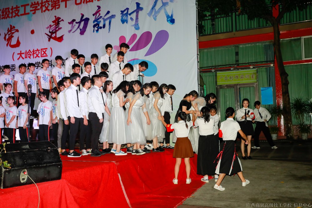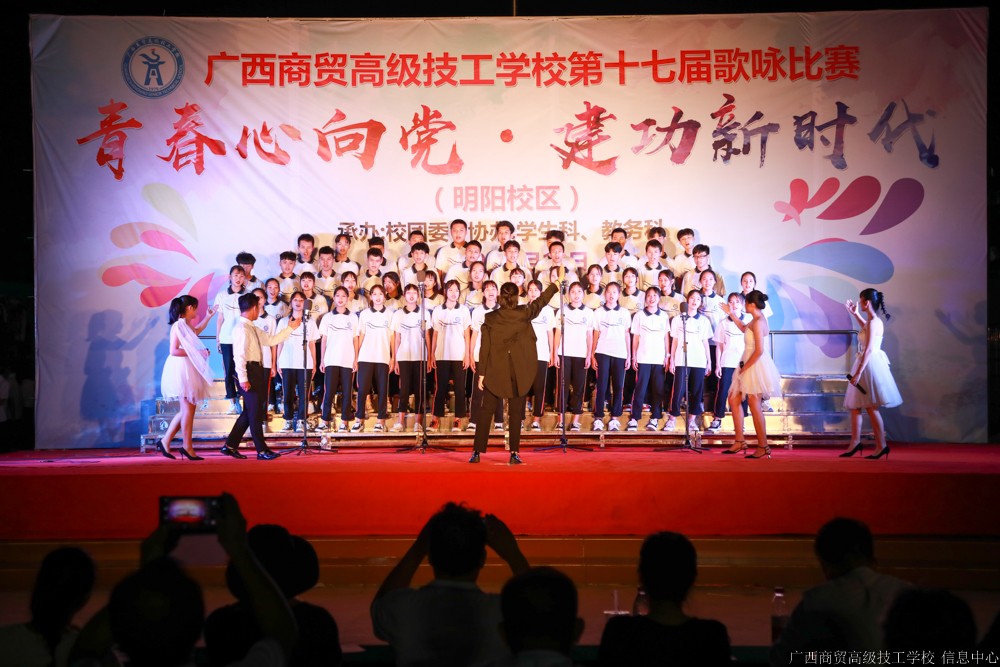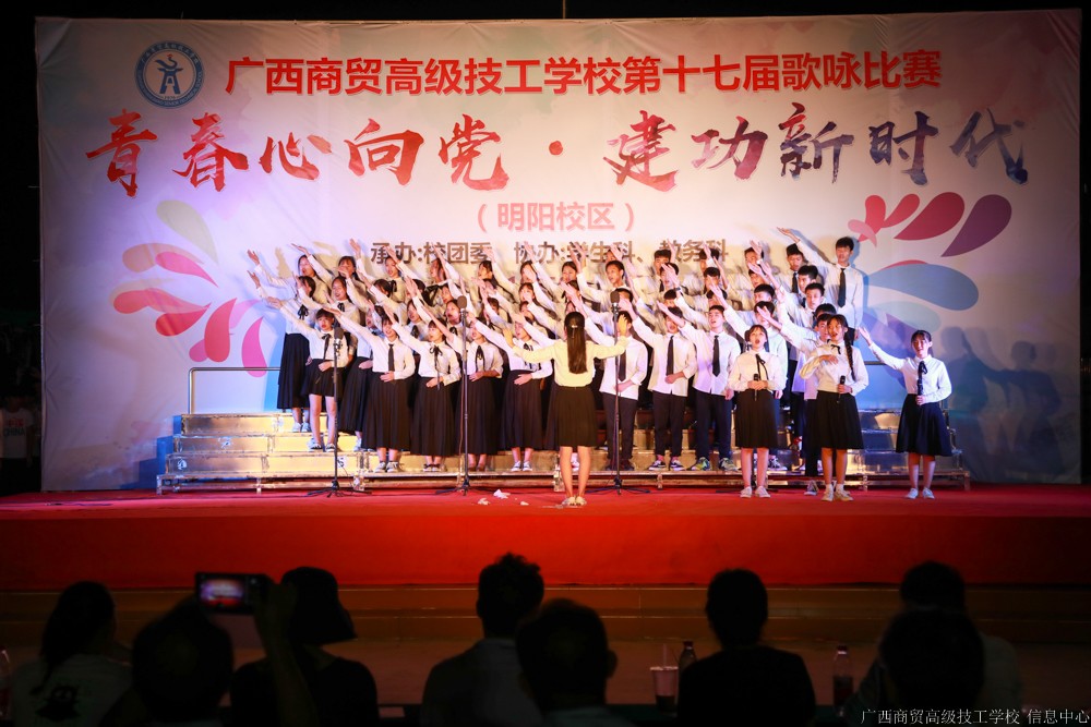 为激发青年学生的集体主义精神和爱国热情,丰富校园文化,充分展示学生的文艺才华和精神风貌,引导我校青年学生以奋发向上的精神风貌迎接新中国成立70周年和五四运动100周年,6月19至20日晚,我校第十七届歌咏比赛先后在明阳校区和大岭校区举行,校长黄学军,副校长邓坚雄、李荣波、何佳林,党委副书记任其江,纪委书记梁朝阳,校长助理何昌武等领导和科室负责人出席本次大赛,与全体师生共同观赛。