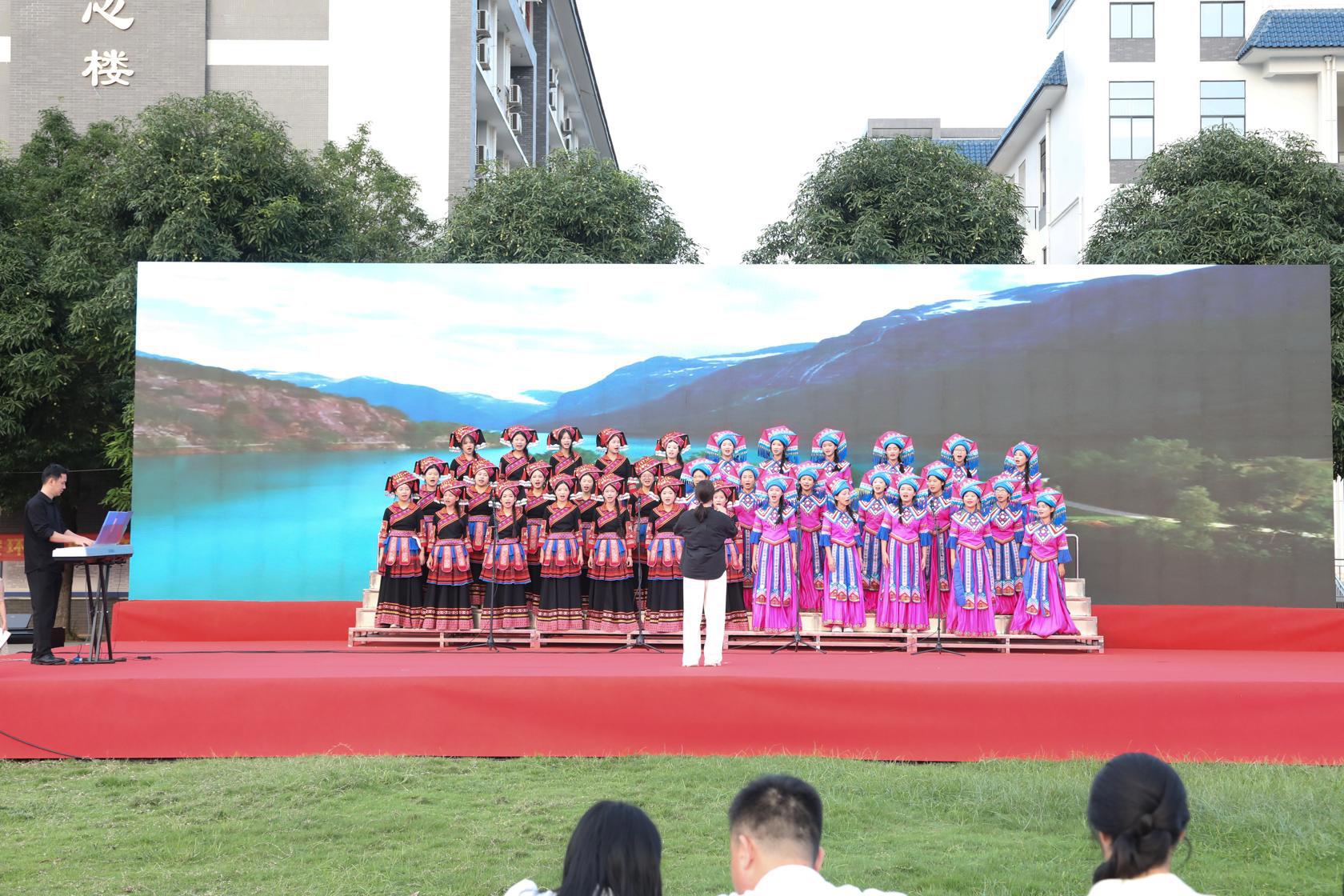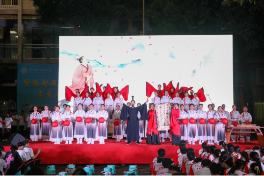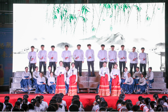 此次比赛汇聚了148个班级积极参与。其中,明阳校区经过激烈的线上角逐,共有15个班级脱颖而出进入决赛,大岭校区参赛班级则直接进行决赛。本次比赛创新性地将“朗诵”与“合唱”相结合,决赛现场使用LED大屏配合学生们的表演,并进行现场直播,将现代科技与传统文化完美结合,为观众带来了沉浸式的视听盛宴。