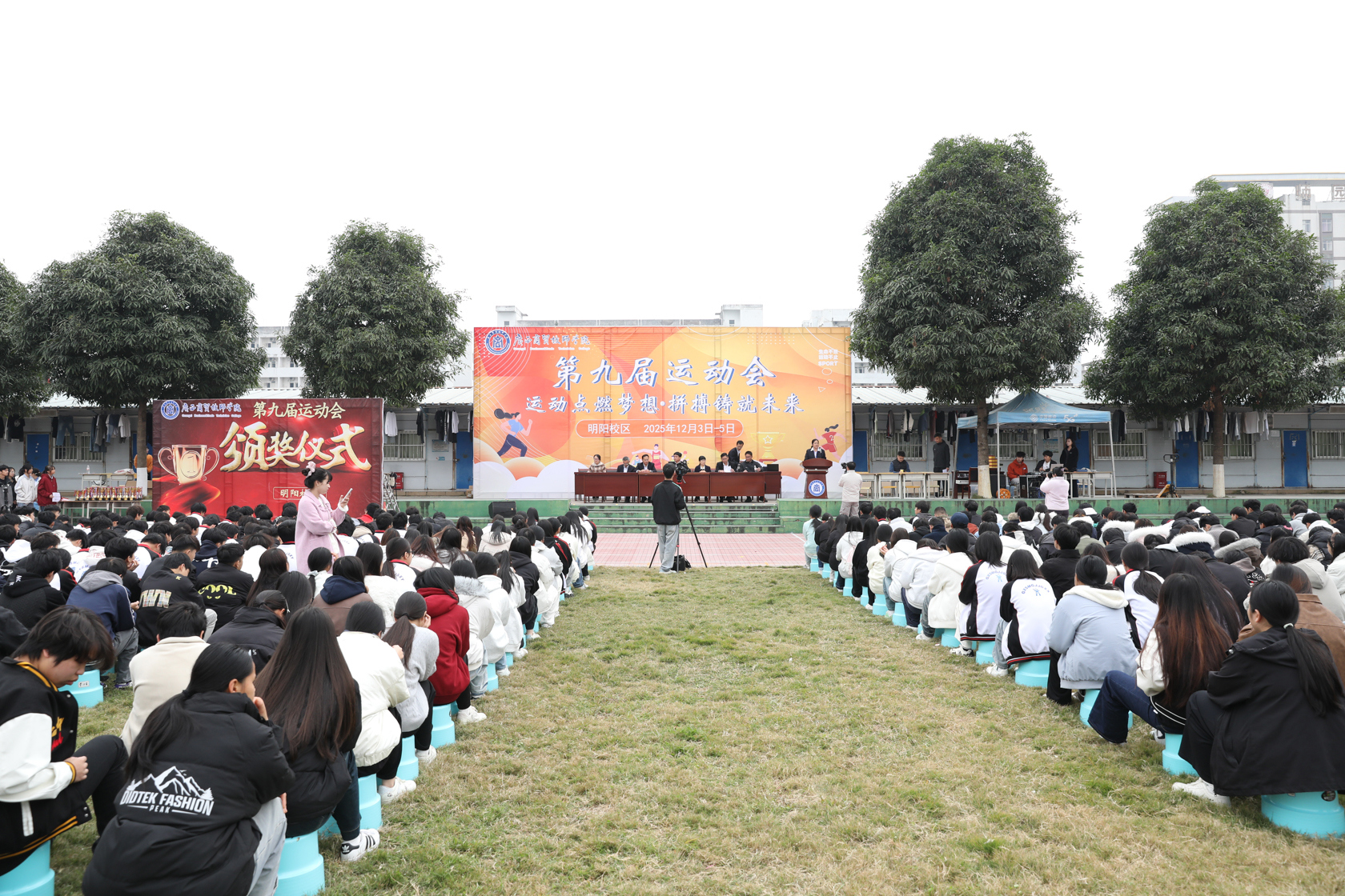 寒风吹不散热血,冬日挡不住激情。经过五天激烈角逐,我院2025年第九届运动会圆满完成了各项赛事。12月2日、5日下午,我院先后于大岭、明阳校区隆重举行运动会闭幕式。学院全体师生参与活动。两校区闭幕式分别由教务科科长刘艳飞和副科长韦任嫣主持。