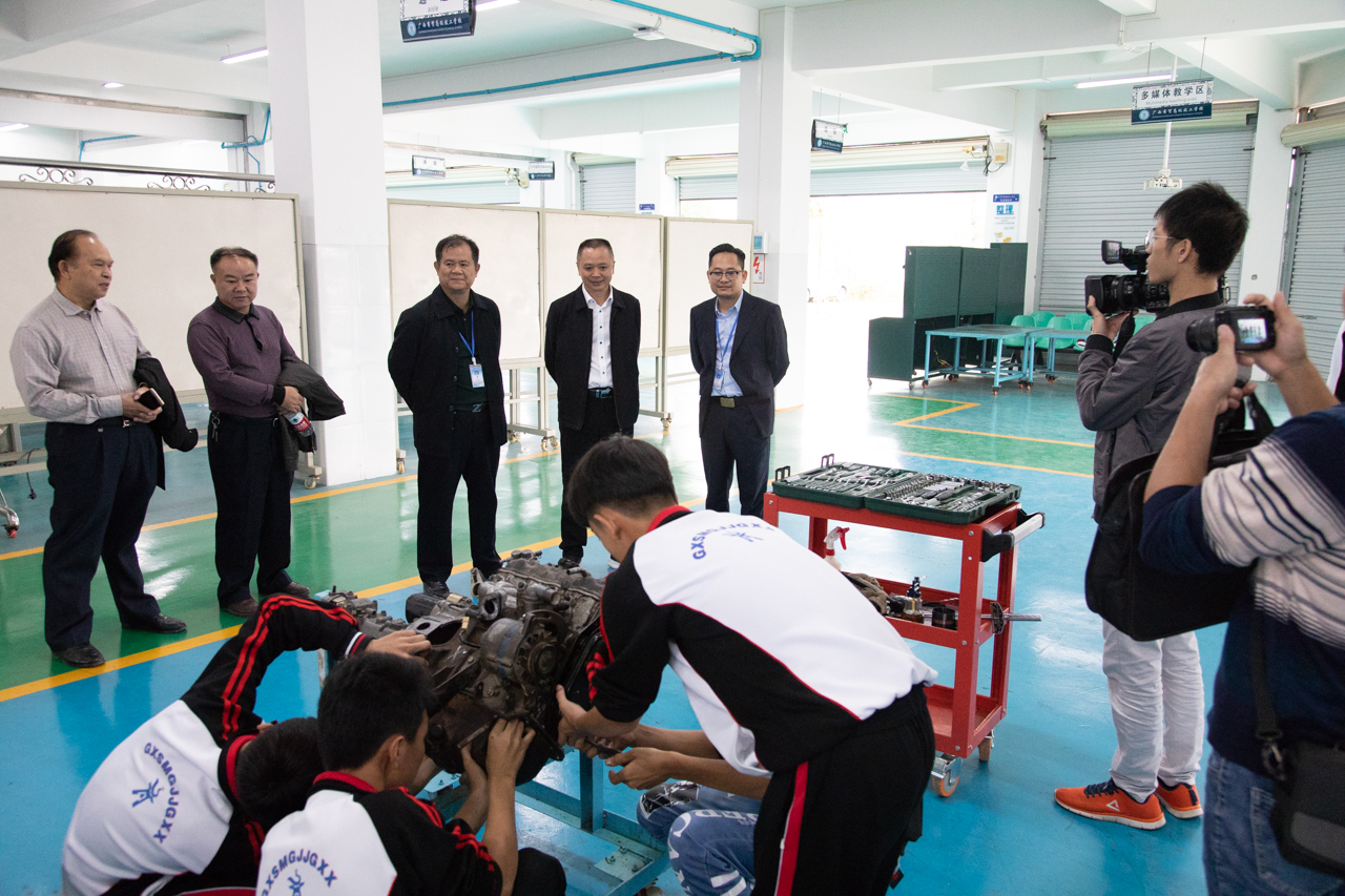 在党委副书记任其江的引领下,岑万兴一行相继参观了计算机房、酒店实训室、汽车实训室等明阳校区的教学实训场所和基础设施。岑副区长一行对学校全力推进明阳新校区建设的做法给予了充分的肯定和赞扬。