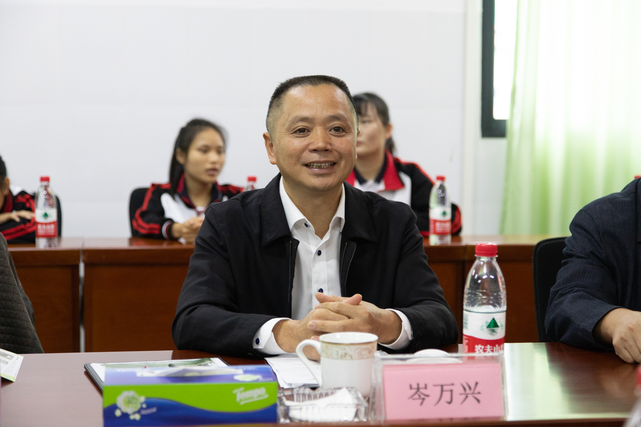 参观结束后在学校会议室召开了座谈会,任其江副书记首先代表学校欢迎右江区的领导们莅临我校关心慰问“两后生”,随后介绍了参加座谈会的校领导及相关教师。接着,校长助理何昌武详细介绍了我校基本情况和自2016年以来对贫困家庭“两后生”的招生、培训、鉴定及就业情况,并重点介绍了右江区户籍的2018级共20名 “两后生”的安置和培训情况。