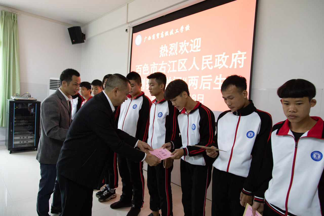 岑副区长代表右江区政府给“两后生”送上慰问金