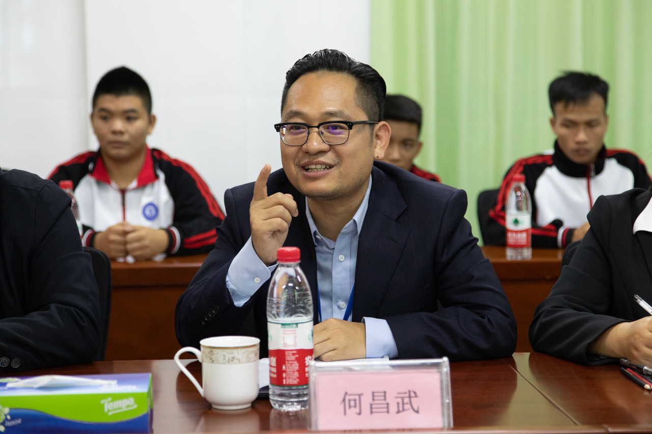 何昌武助理在交流会上向右江区领导详细介绍“两后生”的生活学习情况