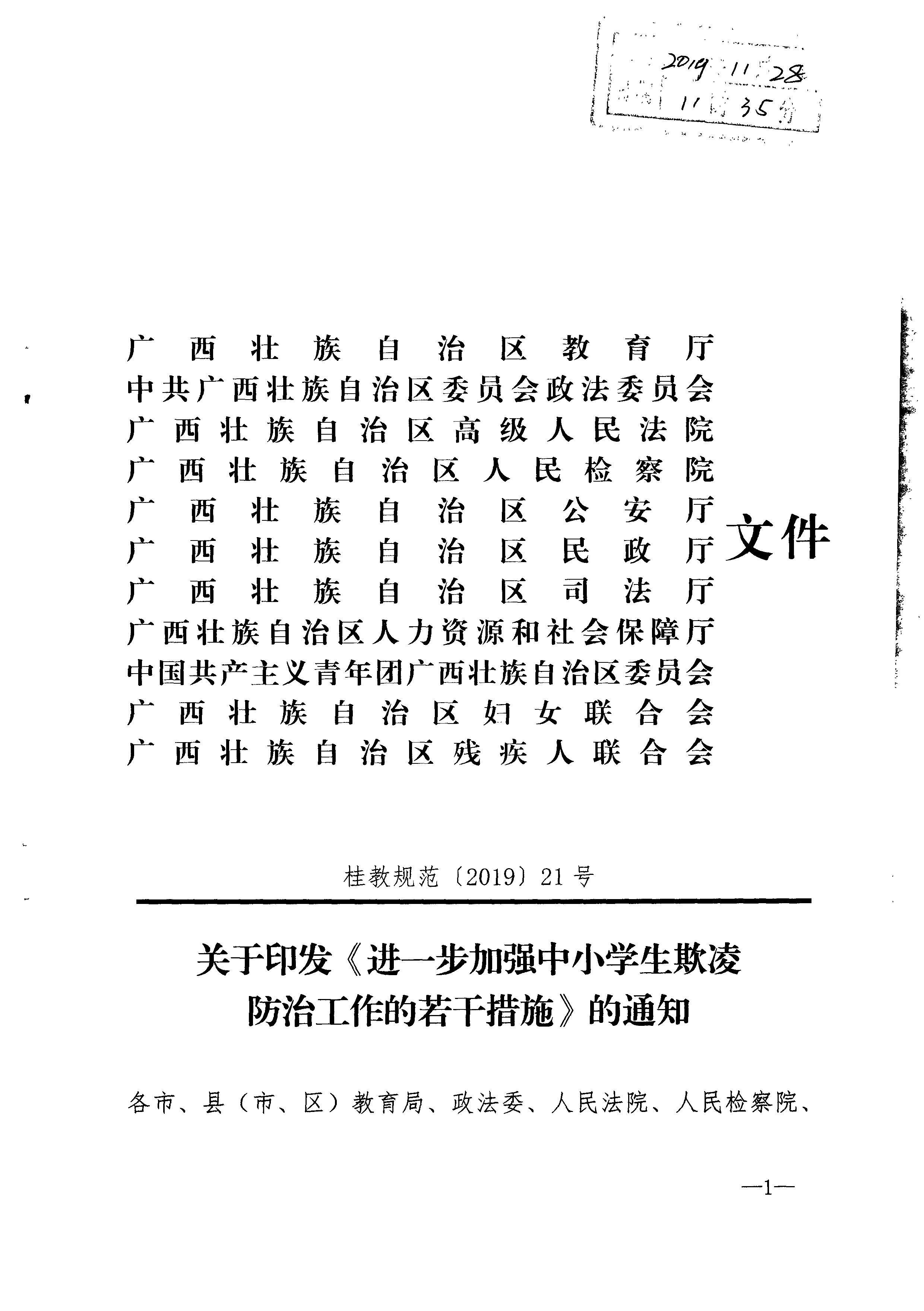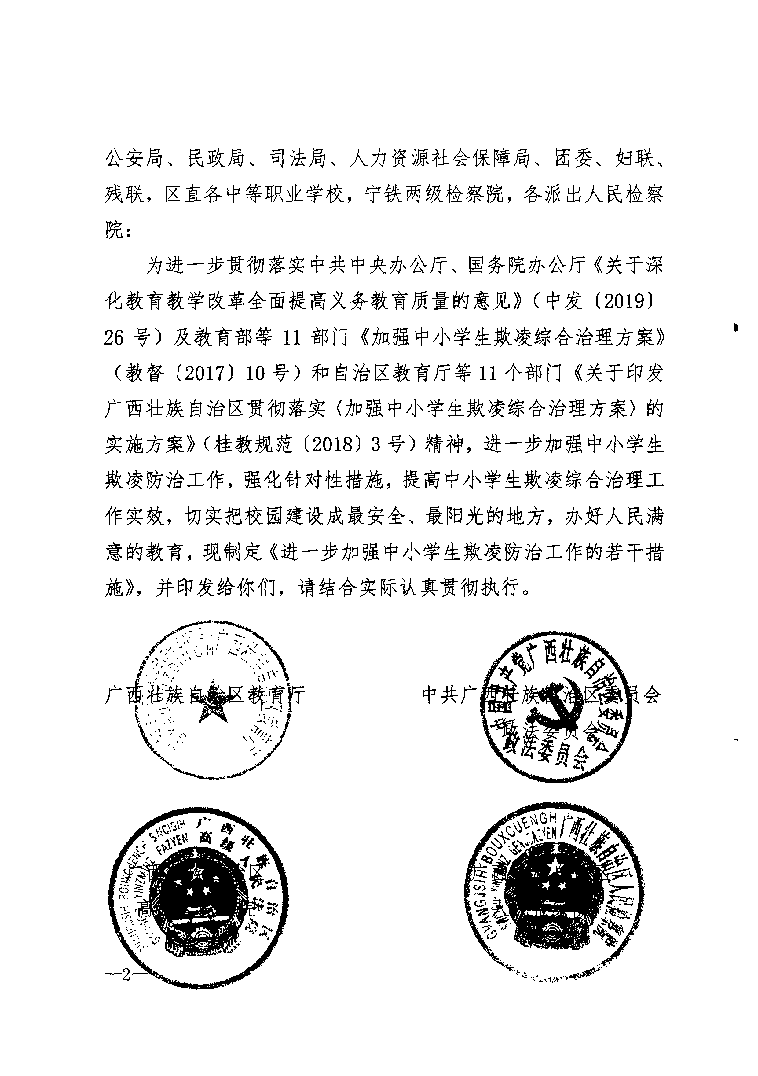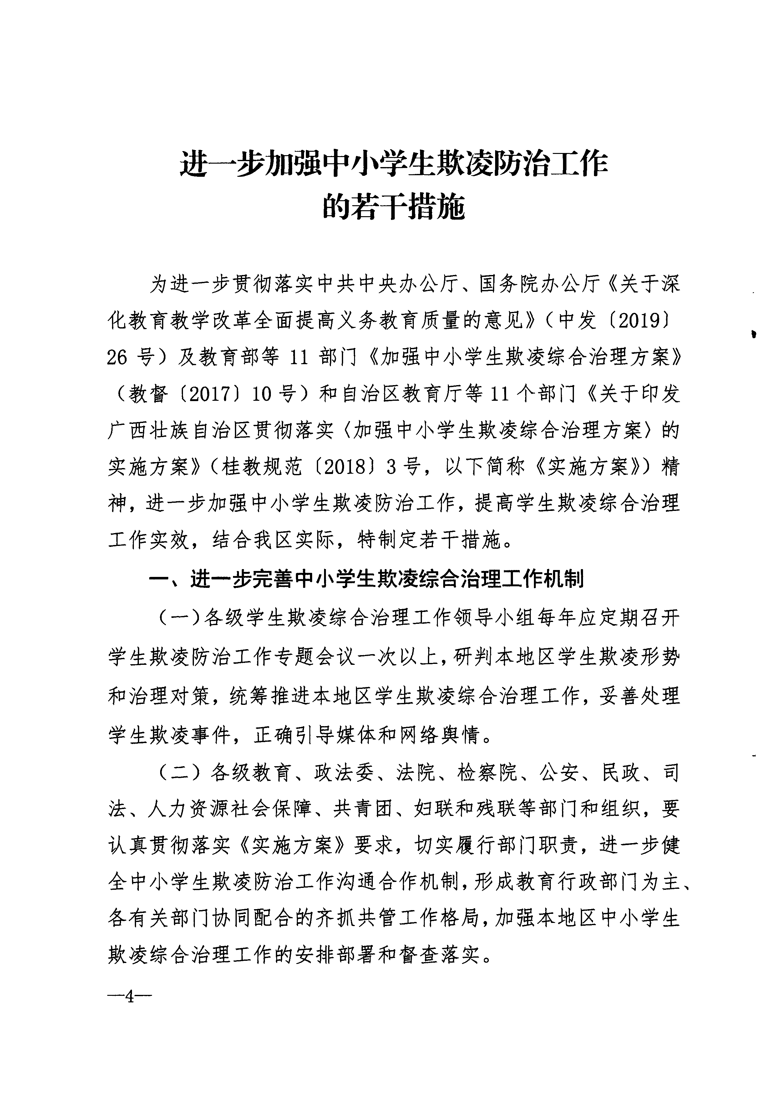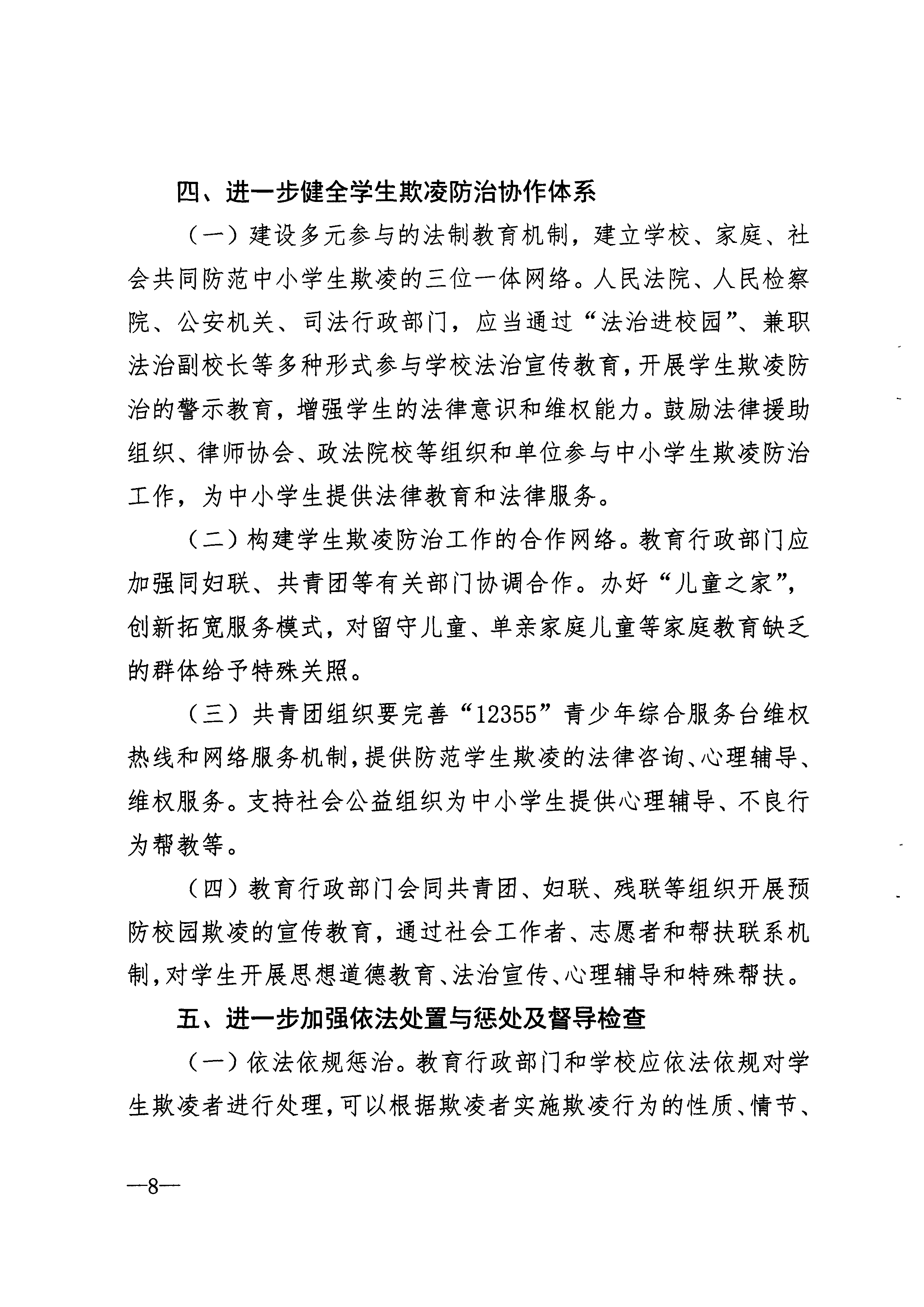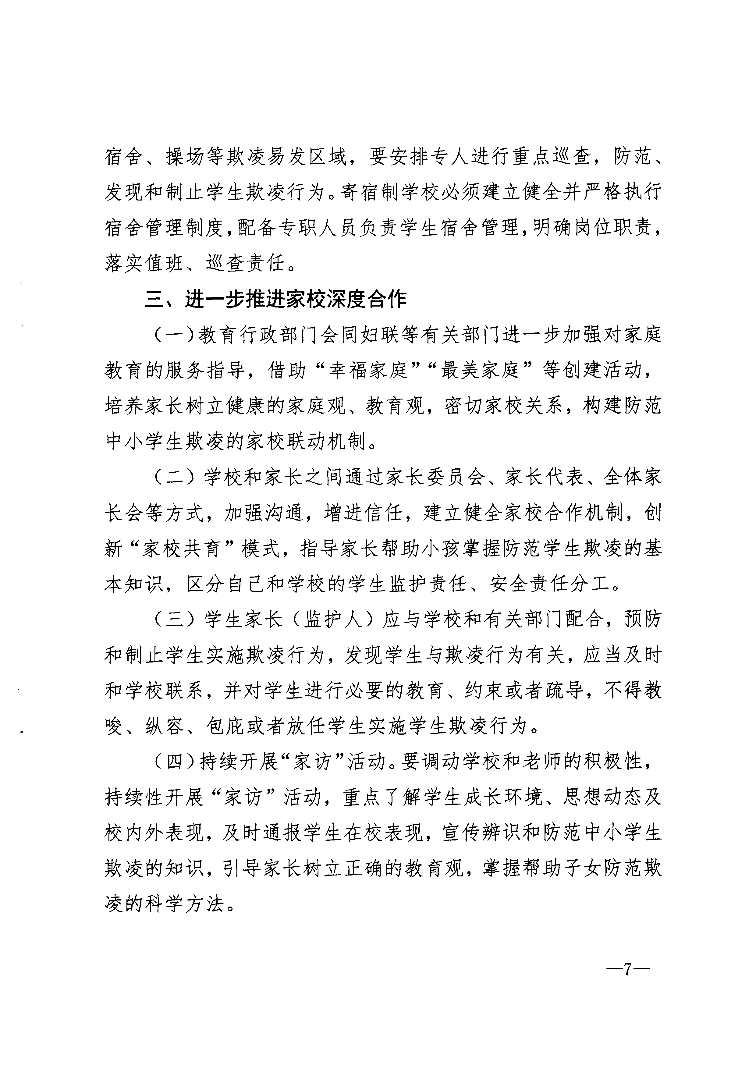 关于印发《进一步加强中小学生欺凌防治工作的若干措施》的通知