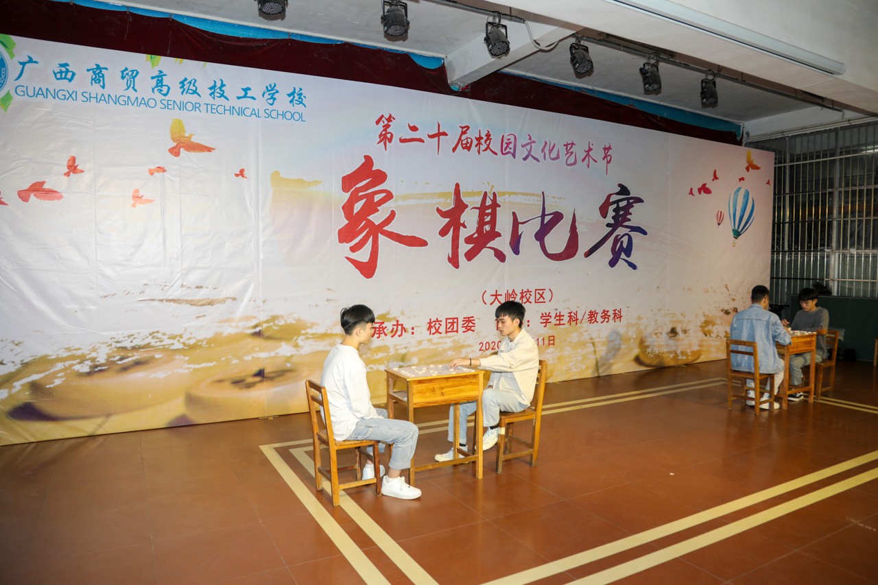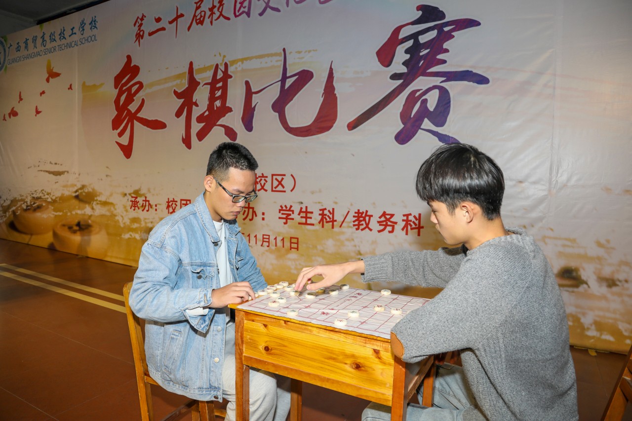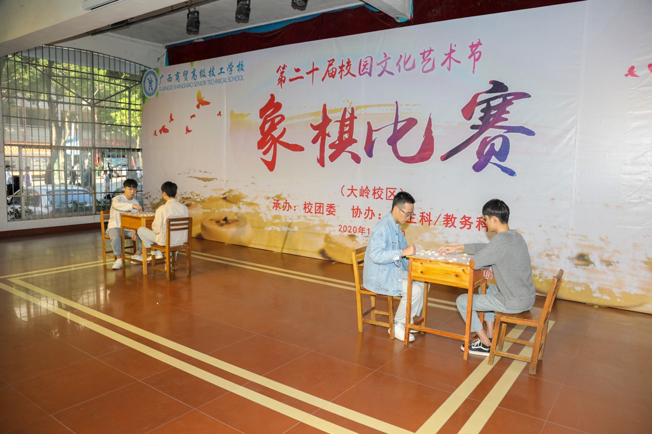 11月11日下午,广西商贸高级技工学校第二十届校园文化艺术节象棋比赛在明阳校区和大岭校区同时举行,两个校区共计160余名学生参加了此次比赛。