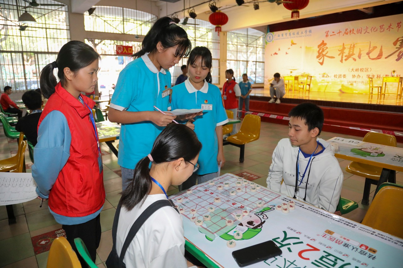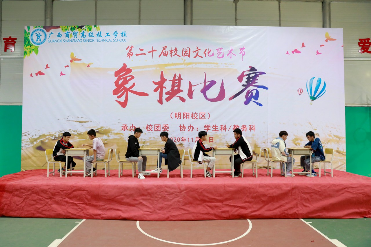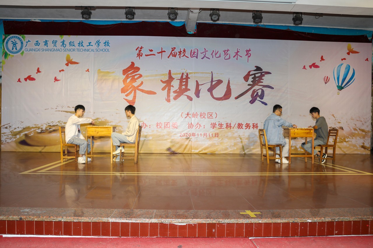 11月11日下午,广西商贸高级技工学校第二十届校园文化艺术节象棋比赛在明阳校区和大岭校区同时举行,两个校区共计160余名学生参加了此次比赛。
