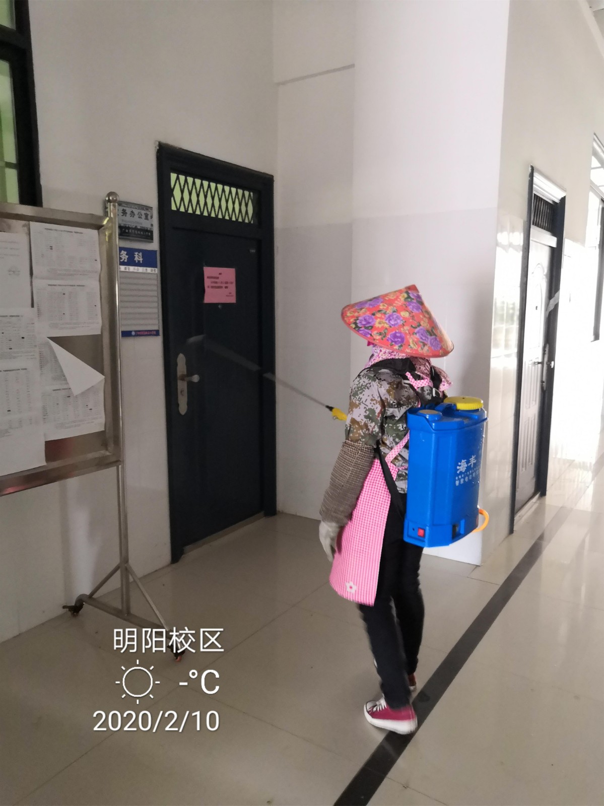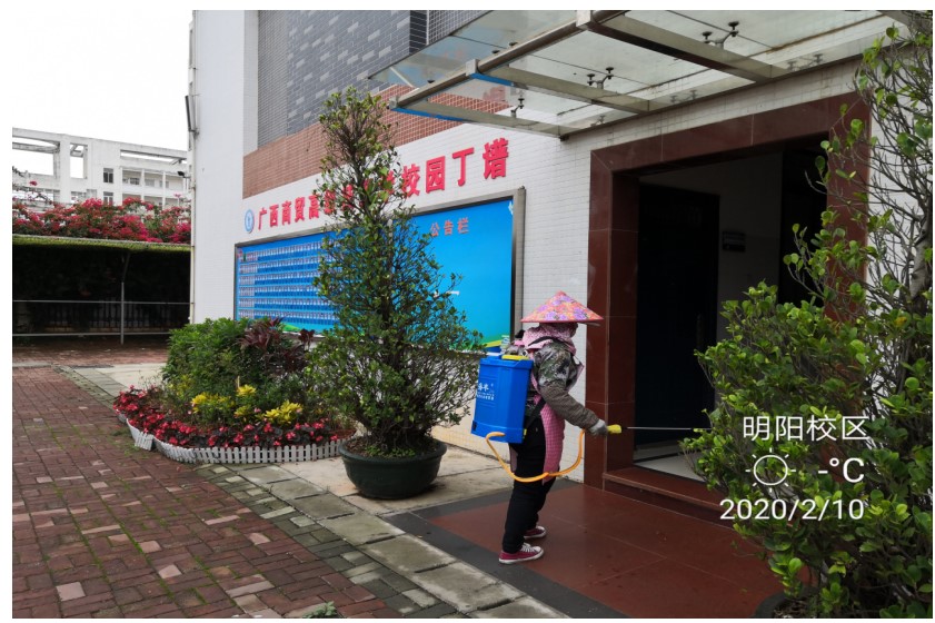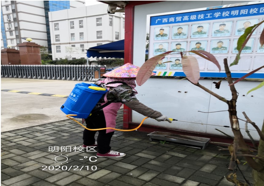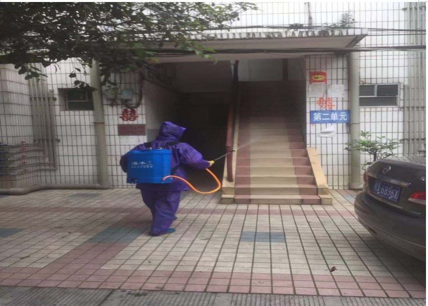 2月10日-11日,总务科组织工作人员对值班岗亭、教工宿舍楼公共楼道、教官宿舍、车库、办公楼道、公共卫生间及其他公共场所开展药物氯浓度500mg/L消毒剂喷洒防疫消毒工作,为全面助力打赢疫情防控阻击战作出积极贡献。