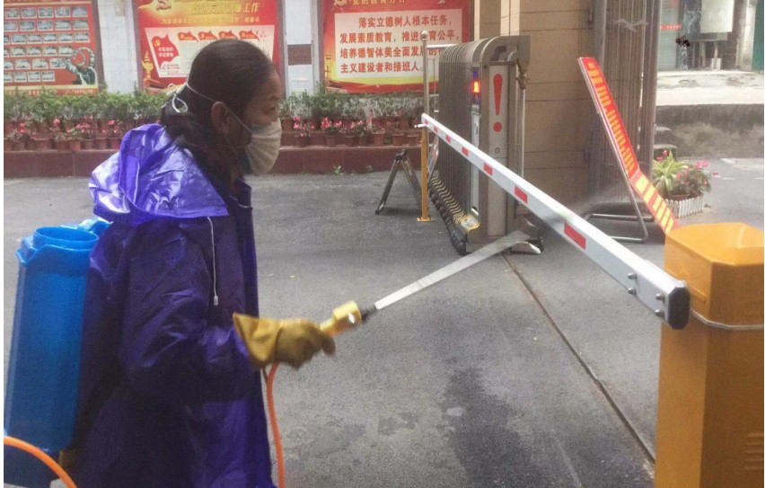 学校大门出入口进行病菌消毒