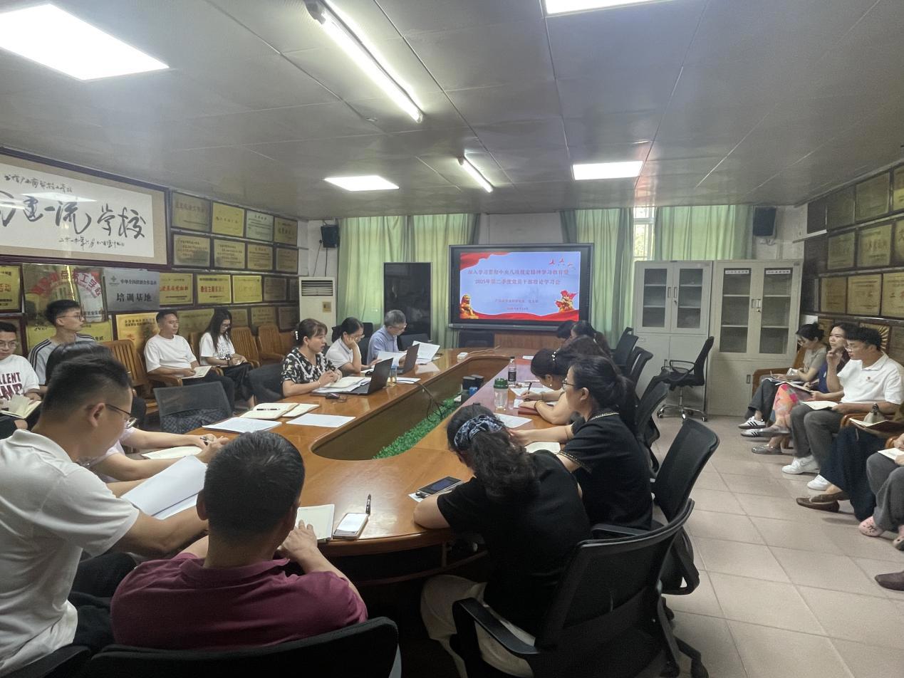 为扎实开展深入贯彻中央八项规定精神学习教育,落实全面从严治党要求,持续加强党的作风建设,进一步增强党员干部廉洁自律意识,第二党支部于2025年6月13日召开深入贯彻中央八项规定精神学习教育会暨2025年第二季度党员干部理论学习会。会议由党支部副书记张婷婷同志主持。