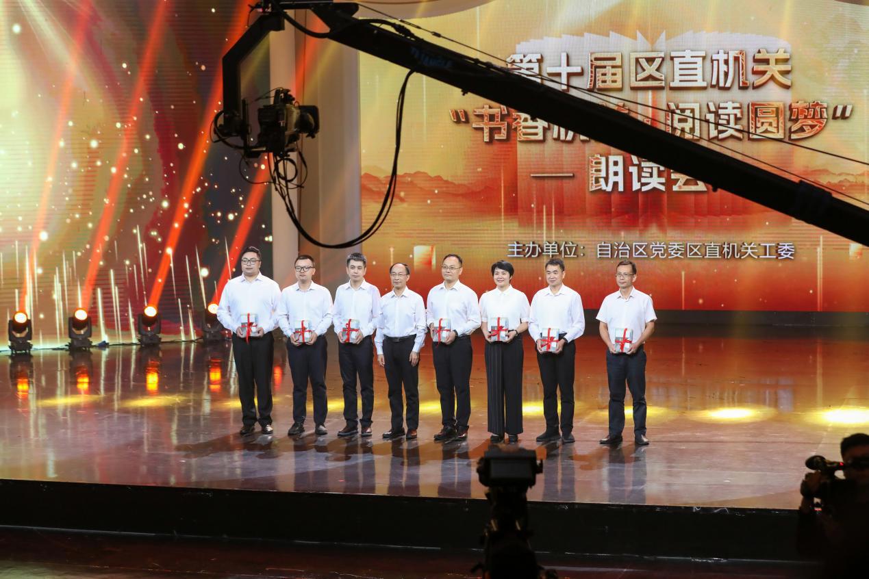 2025年7月13日晚9:20,由自治区党委区直机关工委主办的第十届区直机关“书香机关·阅读圆梦”朗读会在广西卫视正式播出。我院莫荣笙、黄碧燕、陈正华、黄智珉、陈文进、姚依朋6位老师受邀参与录制,共同演绎作品《榜样力量-文秀篇》,展现了新时代奋斗者的精神风貌。