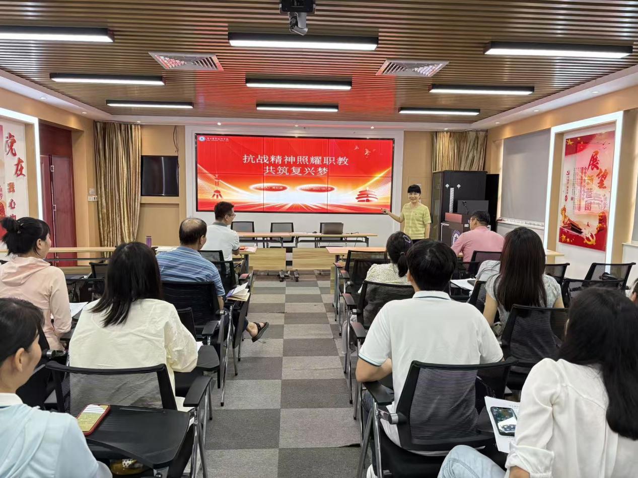 9月26日下午3:00,第四党支部在大岭校区1栋1楼会议室召开集中理论学习会。由学院党委委员、副院长黄红波主讲专题党课,会议以“深化理论学习,凝聚思想共识” 为核心,聚焦学习习近平总书记在纪念中国人民抗日战争暨世界反法西斯战争胜利 80 周年大会上的重要讲话精神,以党委领导示范引领推动精神落地。课上,黄红波从三维度解读讲话核心:一是结合党的百年历程,阐释抗战胜利“捍卫民族独立、奠定复兴基础”的历史意义;二是解读抗战精神的四大内涵,强调抗战精神是砥砺民族奋进的宝贵精神财富;三是立足学院实际,应将抗战精神融入立德树人的教育教学工作中,发挥技能人才培养主阵地作用。最后,黄红波提出三点要求:一要强化理论武装,深学笃行新时代党的创新理论,增强 “四个意识”、坚定 “四个自信”、做到 “两个维护”;二要传承红色基因,教师党员应将爱国奋斗融入教学,培养学生树立技能报国之志;三要服务学院发展,以抗战精神破解办学难题,凝聚合力助力学院建职教品牌、服务区域产业高质量发展。