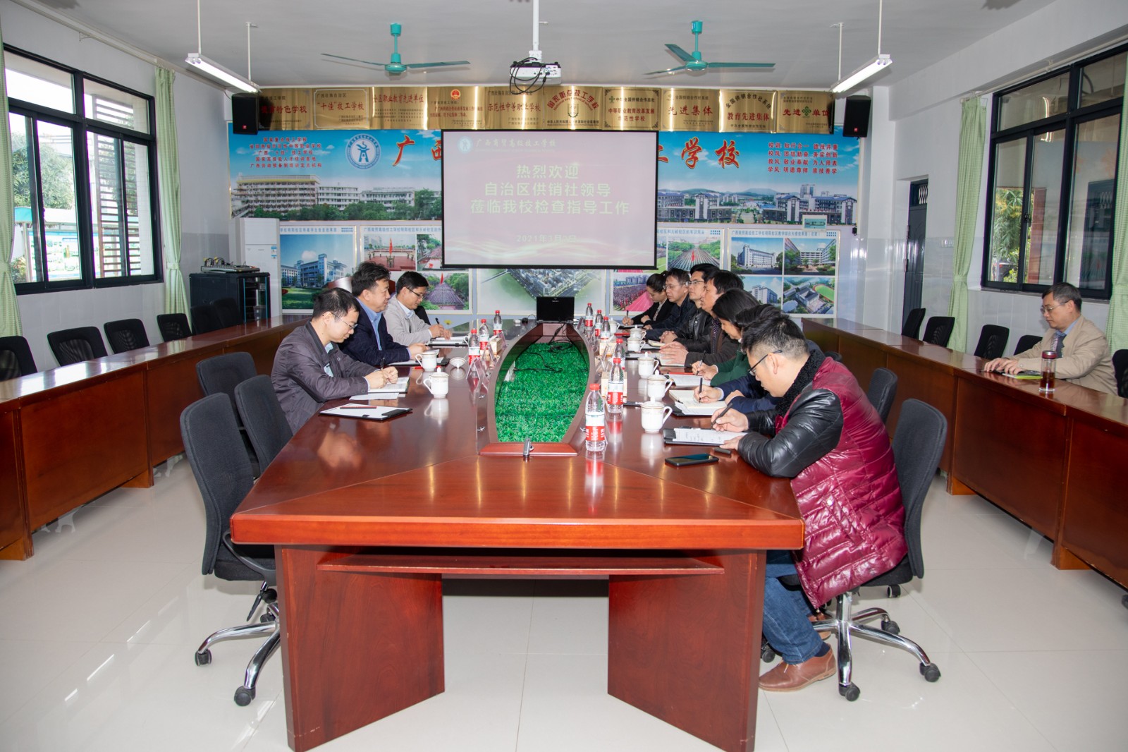 3月2日上午,自治区供销社党组副书记、社监事会主任吴浩岭一行莅临我校开展调研工作。