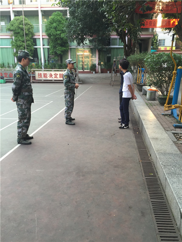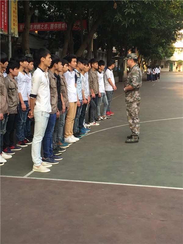 2015年3月1日,来自贵港市护航教育咨询服务有限公司的15位教官进驻我校,正式拉开我校准军事化管理的序幕。军事化管理是我校在学生管理上的一个进步,从宿舍内务卫生到校园内的管理秩序,都在发生慢慢的转变,经过一个月的磨合后,现在的准军事化管理模式已现雏形。每天校园里教官们训练的口令声和威武的步伐声交错相融,俨然一道靓丽的风景线。