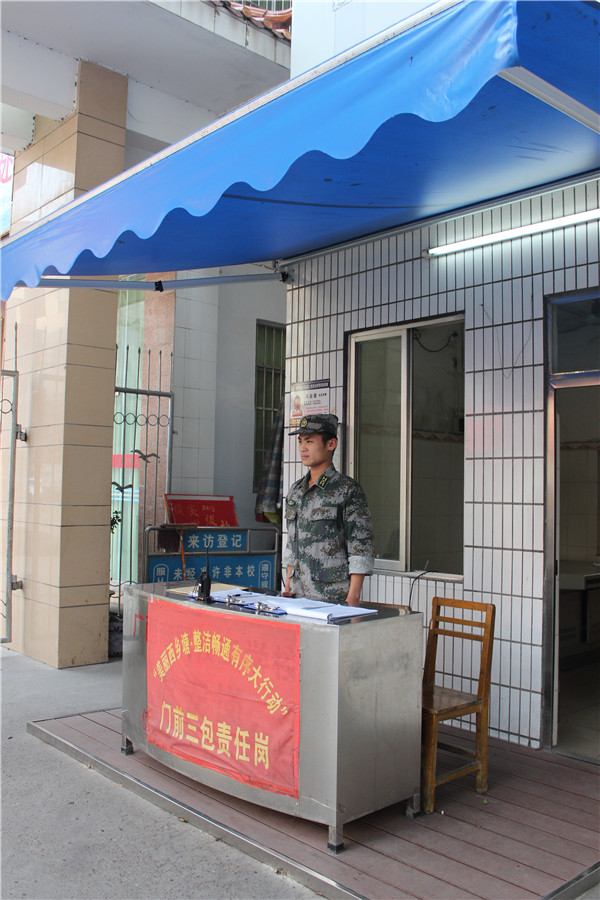 校内值班岗教官认真工作