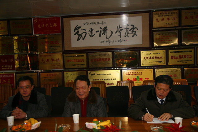 来自桂林商贸旅游技工学校的新一届领导班子也传经送宝,大家就2012年教学管理实践中的得失交流了经验和做法,也沟通了2013年的办学方向和主要改革目标,取得了进一步共识。