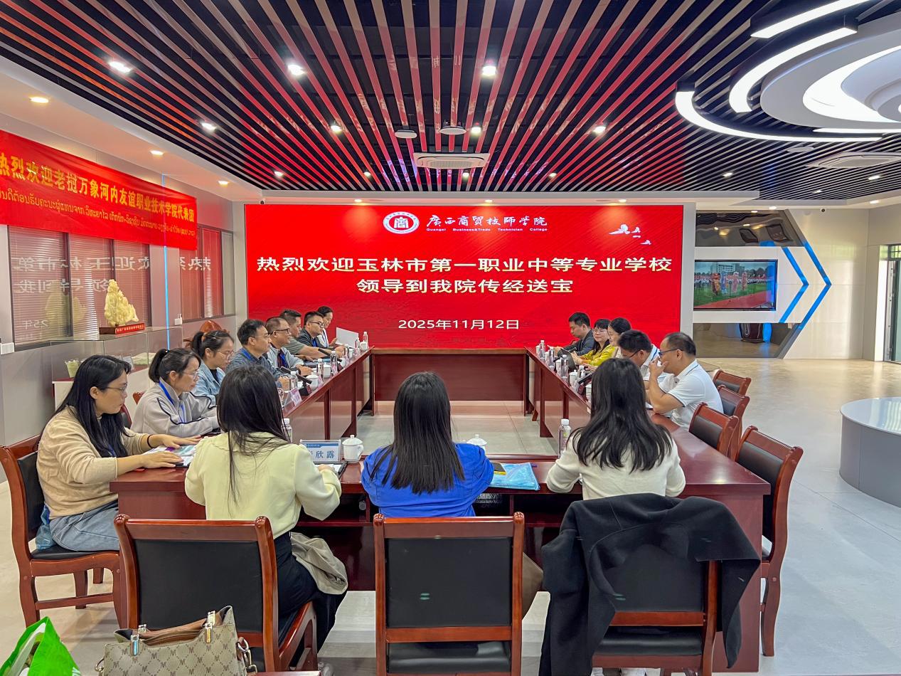 为深化职业教育校际合作,共享办学经验,促进教育教学质量协同提升,11月12日上午,玉林市第一职业中等专业学校副校长黄善升率领招生就业办副主任、优秀班主任代表一行12人,莅临我院明阳校区开展交流学习座谈。学院党委委员、副院长李洁琛,学生科科长党斌,学生科副科长欧阳美玉,招生就业科副科长黄上权热情接待了来访嘉宾,双方围绕班主任能力提升、实习学生指导等核心议题展开深入交流。