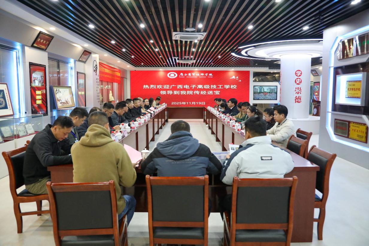 11月19日下午,广西电子高级技工学校党委书记、校长兰翔一行到我院明阳校区进行交流学习。学院党委书记、院长宋成多,党委委员、副院长李洁琛以及各相关部门负责人热情接待。