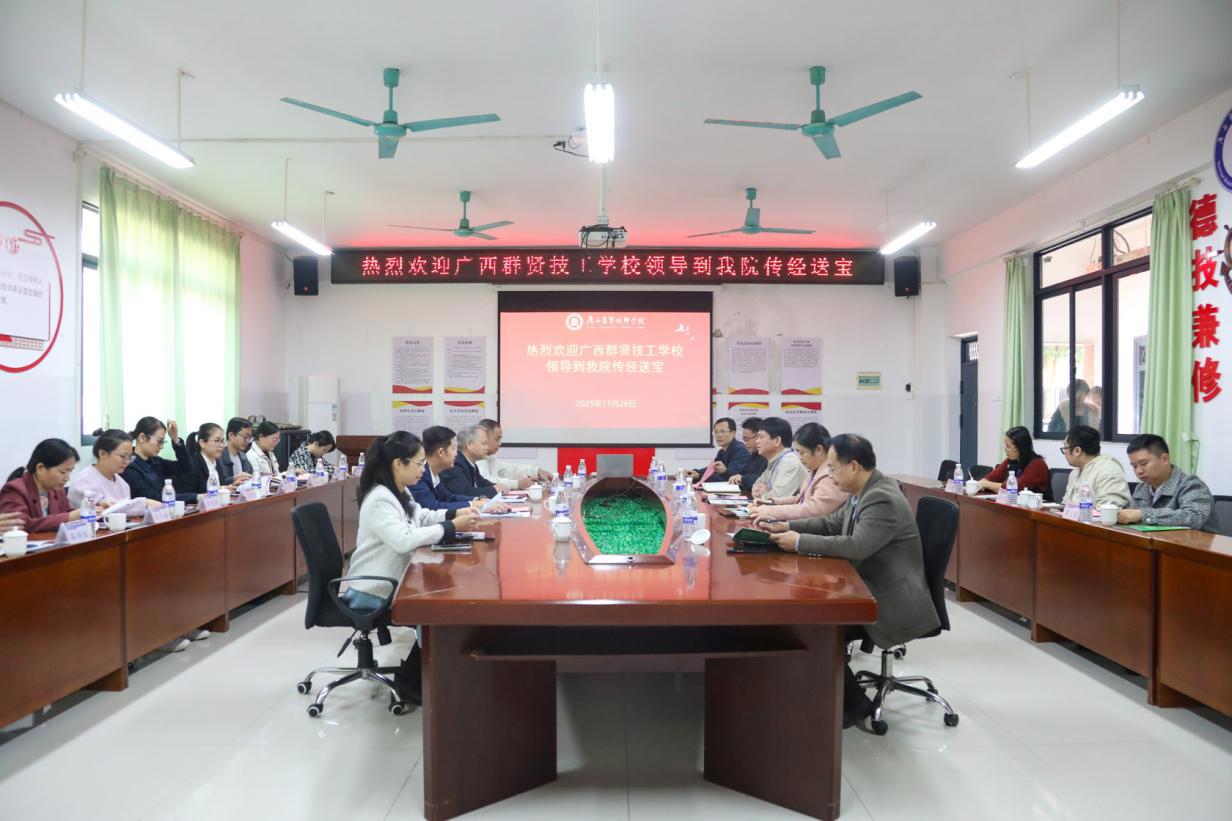 宋成多院长对此做出积极回应,他介绍了学院近年来在各类技能竞赛、教师职业能力大赛、国家级项目申报等方面取得的丰硕成果,并结合学院办学实际,分享了在优化资源配置、提升精细化管理、加强师资队伍建设等方面的经验做法。最后,他表示,愿与广西群贤技工学校建立长期合作机制,希望两校能在专业建设、人才培养等方面实现优势互补,共同推动职业教育高质量发展。