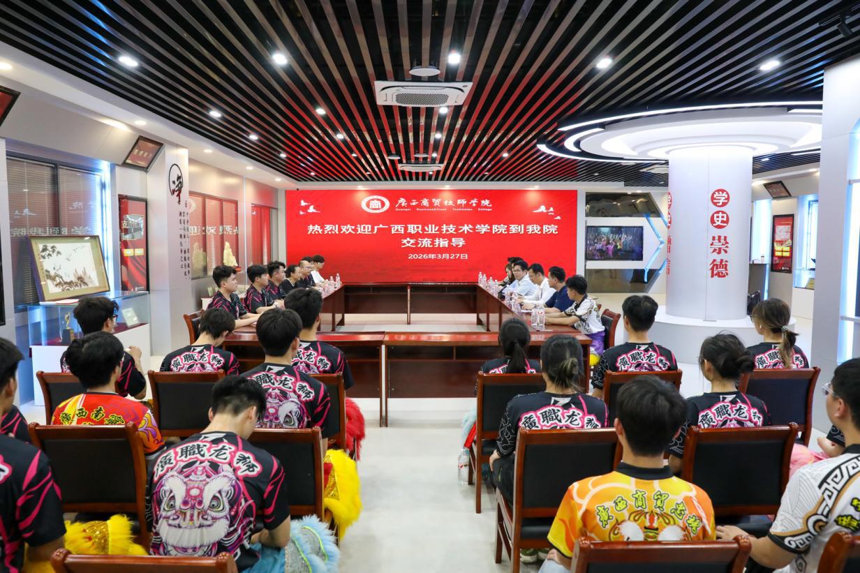 为深入贯彻落实中华优秀传统文化传承与发展,加强校际间共青团工作建设及学生社团的交流合作。2026年3月27日下午,广西职业技术学院团委书记周晓芳一行30人到我院明阳校区开展龙狮文化交流活动。我院党委书记宋成多携班子成员热情接待,党委委员、副院长岑锦华出席座谈会。