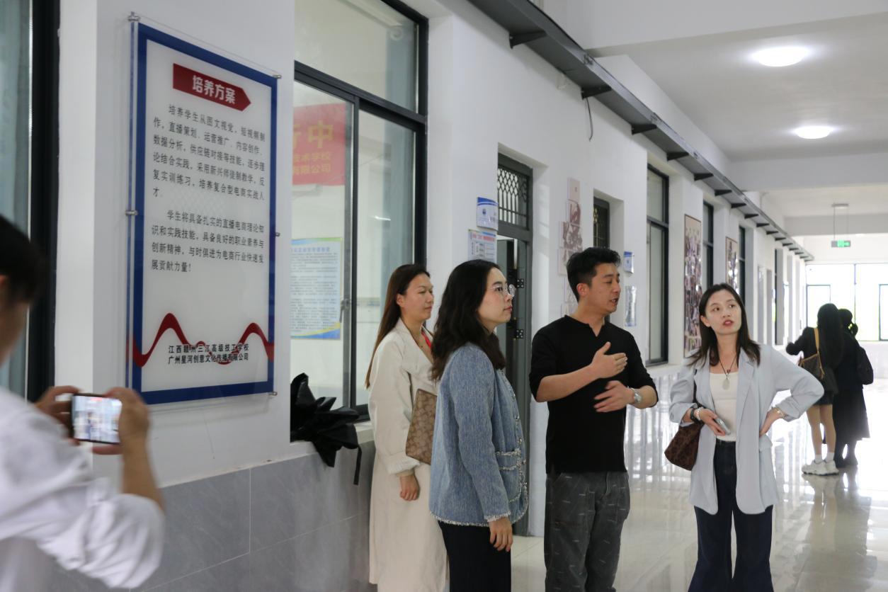 广州星河创意文化传播有限公司创始人洪鹏辉及企业教师团队热情接待我院调研团队,并带领实地参观了校企共建的直播间、短视频剪辑室、跨境电商孵化室等实训场地。
