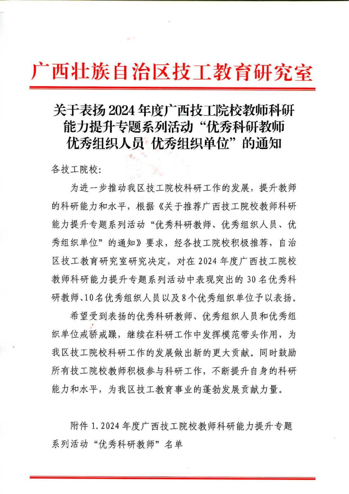 此次荣誉不仅是对我院科研工作的充分肯定,更是对全体教师辛勤付出的高度认可。未来,我们将继续努力,进一步提升科研能力,为广西技工教育事业的发展贡献力量!