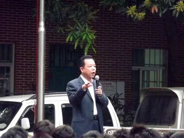 4月9日早晨,第九周升旗仪式结束后,黄学军校长发表以“珍惜生命,关注安全”为主题的国旗下讲话。