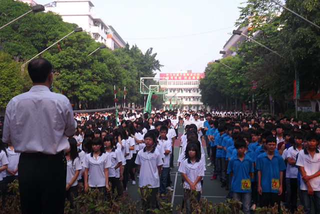 全校师生列队参加升旗仪式