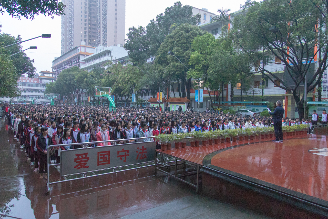1月7日清晨,我校第二十周升旗仪式在大岭校区和明阳校区如期举行,全体师生参加此次仪式。