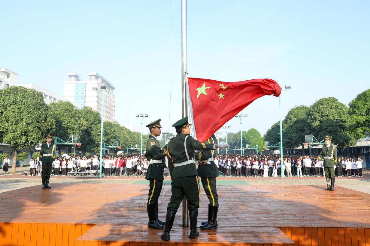 5月12日清晨,我院在明阳、大岭校区举行升旗仪式。礼毕,总务科科长农琦和党建办副主任徐子寒作国旗下讲话。