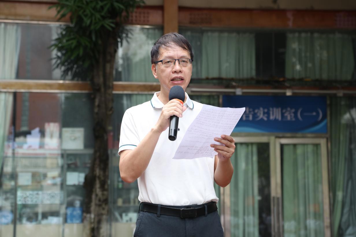 6月9日清晨,我院在大岭、明阳校区举行升旗仪式。礼毕,党委专职副书记、工会主席周安和教务科副科长黄炜作国旗下讲话。