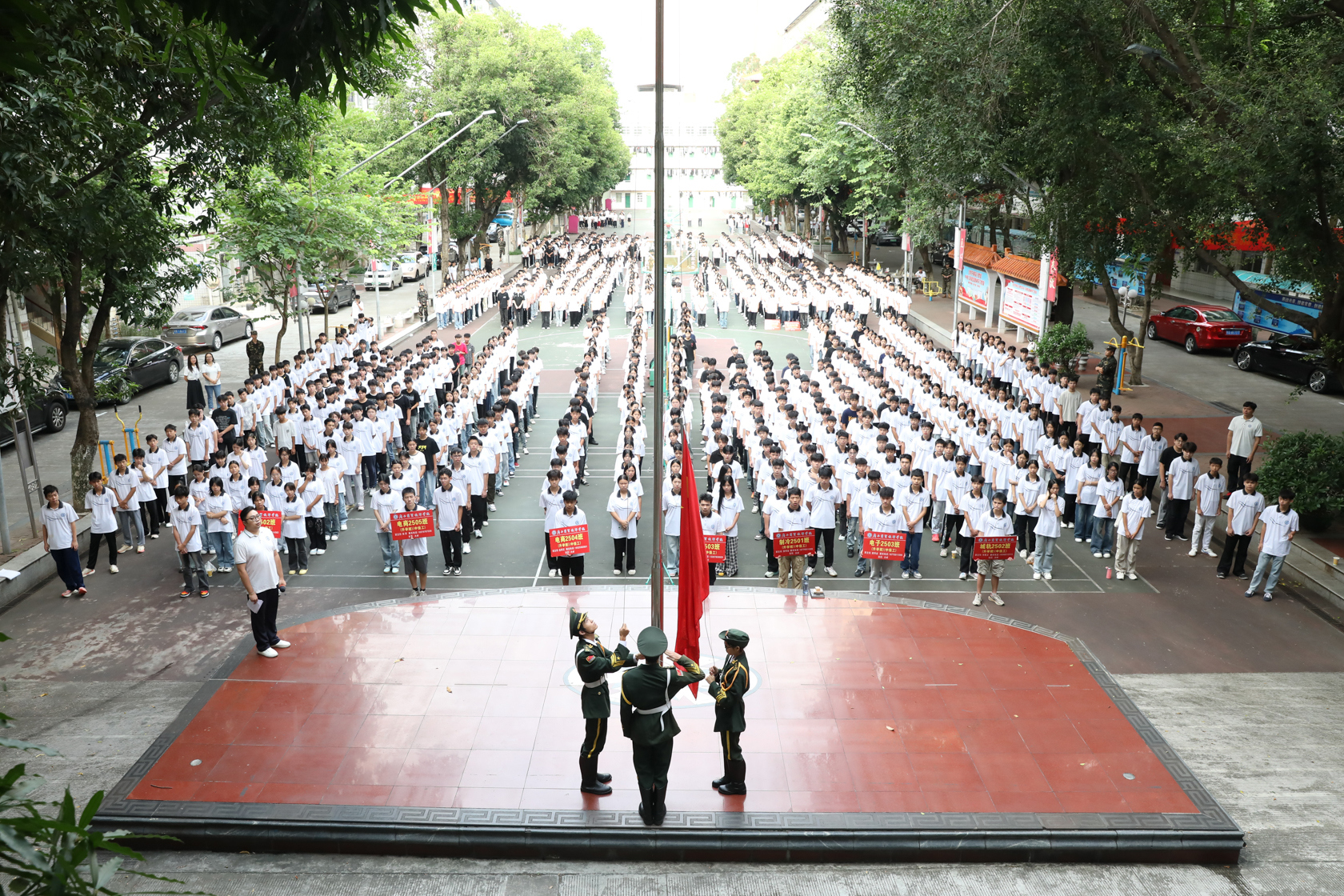 9月15日清晨,学院在明阳、大岭两校区同步举行第五周升国旗仪式,全体师生面向国旗肃立并行注目礼,五星红旗在嘹亮的国歌声中冉冉升起。