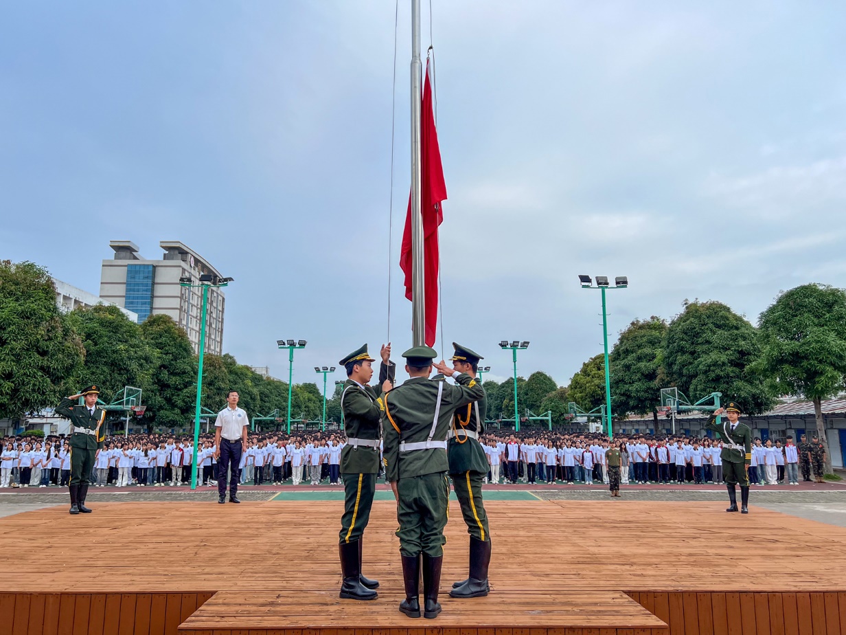 9月22日清晨,学院第六周升国旗仪式在明阳、大岭两校区同步举行,全体师生参加。团委书记、保卫科科长黄立杰,党建办副主任徐子寒分别在国旗下讲话。