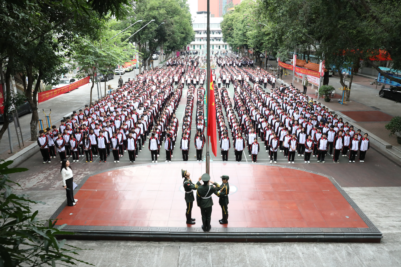 秋曦微露,金风送爽。10月27日清晨,学院第十一周升国旗仪式在明阳、大岭两校区同步举行。伴随着庄严雄壮的国歌声,五星红旗冉冉升起,全体师生身着统一校服,面向国旗行注目礼。礼毕,教务科科长刘艳飞、培训鉴定科科长龚慧娟分别在两校区国旗下讲话。
