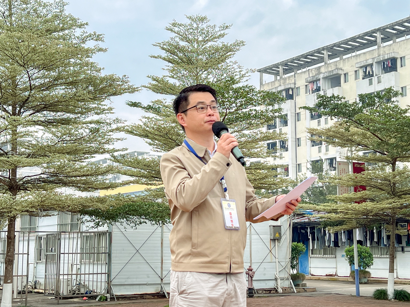 礼毕,办公室主任陈世辉、财务科科长韦芳分别在两校区发表国旗下讲话。他们回顾上周学院重点工作:一是学院与老挝万象河内友谊职业技术学院在明阳校区举行人才培养基地揭牌仪式,此为中老职教深化合作的重要里程碑,亦是学院“技能出海”的有力见证,未来双方将在专业建设、师生交流等方面深化合作;二是成功举办2025年度教师课堂教学能力大比武,夯实教师教学基本功,助推教学质量提升;三是开展 “邕护反走私有我” 反走私普法宣传活动,以木偶剧形式强化学生法治意识。