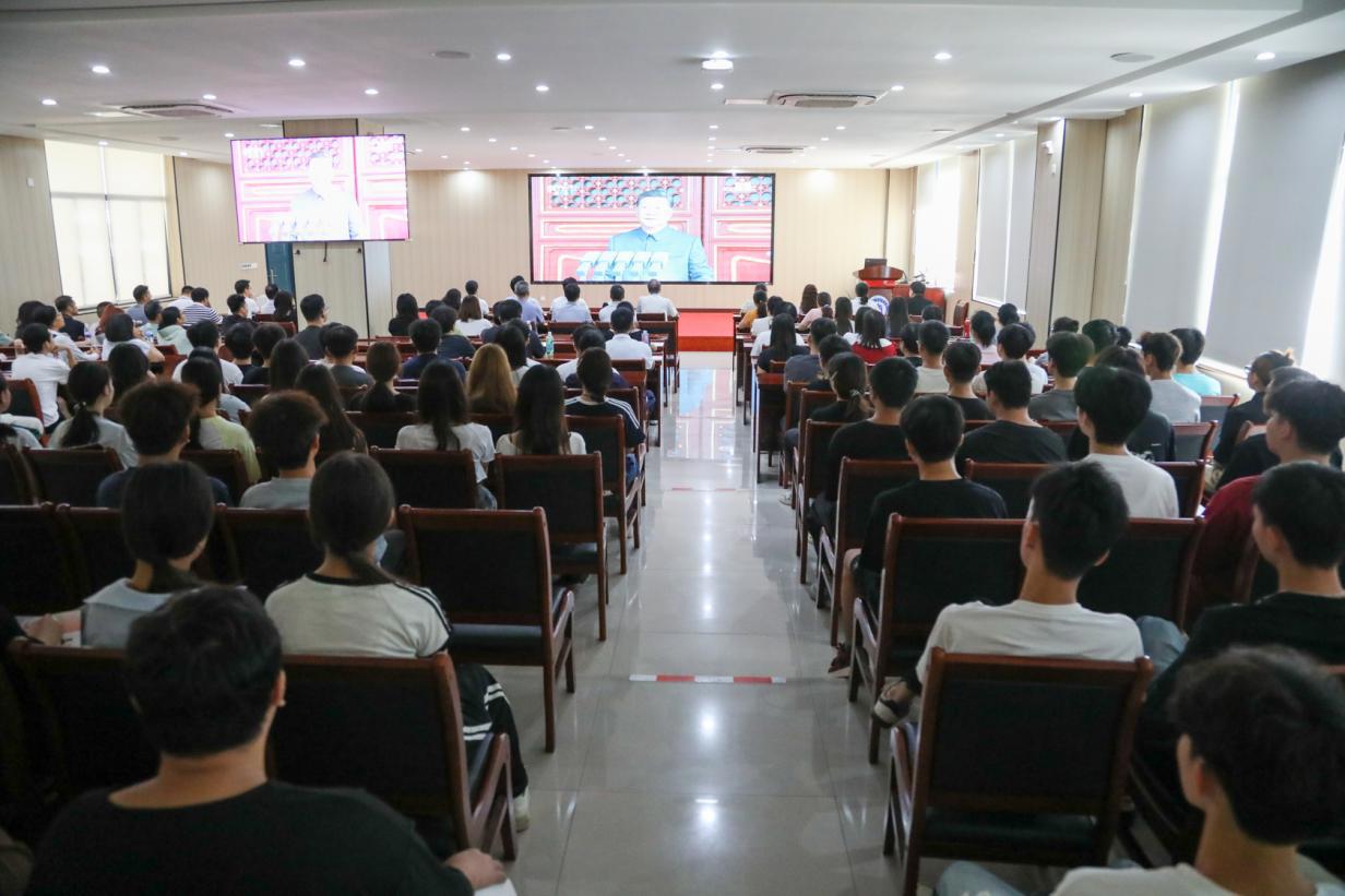 上午9时整,大会正式开始,师生们跟随直播画面中冉冉升起的五星红旗唱起了国歌,随后认真聆听中共中央总书记、国家主席、中央军委主席习近平发表重要讲话,深刻领会讲话精神。