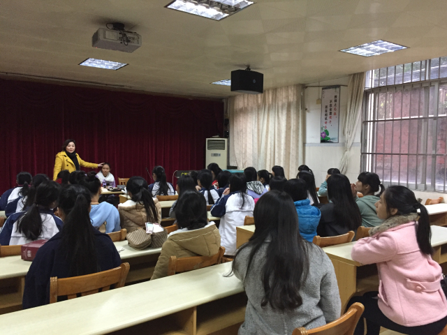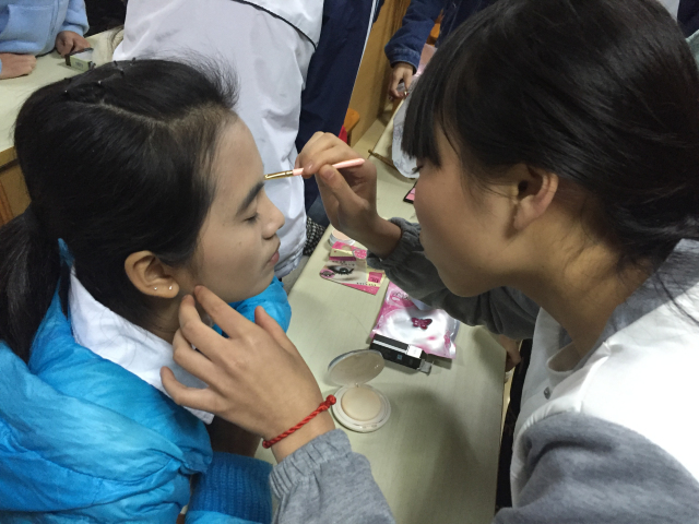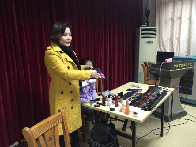 主题化妆活动讲座在一楼多媒体教室.举行,本次讲座邀请了南宁“吉萱亚”美发彩妆学校的陈老师进行授课,活动当天学生带着好奇来到了美妆讲堂,老师现场选取观众演示了舞台妆的基本美妆画法,通过现场化妆步骤的讲解,让同学们更好的去理解、学习。在课堂上同学们受益匪浅,并尝试自己动手操作。本次活动不仅丰富了同学们的娱乐生活,也让学生生学习了舞台妆的化妆技巧。