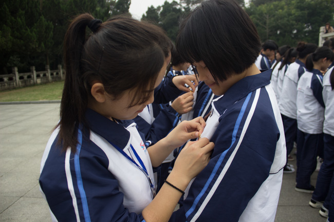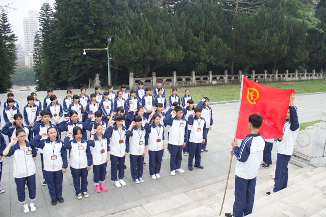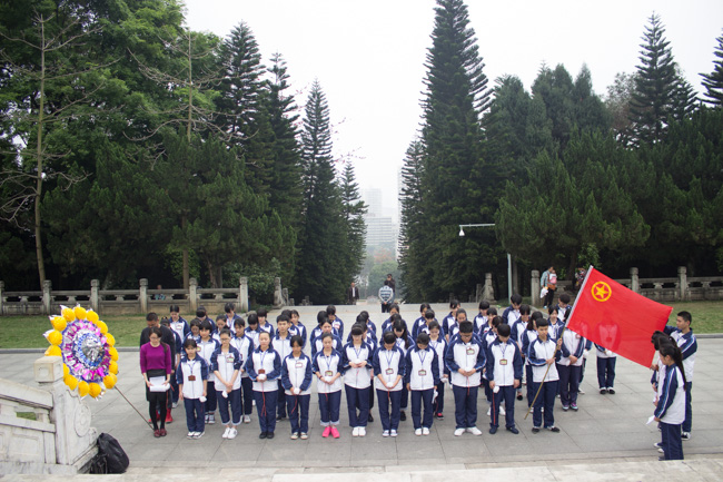 2016年3月31日下午,我校校团委副书记党斌老师,韦惠群、谢珏苑以及李慧老师带领各班级学生代表,学生会代表以及团委委员代表前往人民公园,进行缅怀革命先烈活动。本次活动开展了两大环节,第一环节包括向革命先烈缅怀默哀三分钟,向革命先烈敬献花圈与小白花,以及缅怀悼词;第二环节是新团员面向团旗,面向革命先烈进行入团宣誓,然后老团员为新团员佩戴团徽。