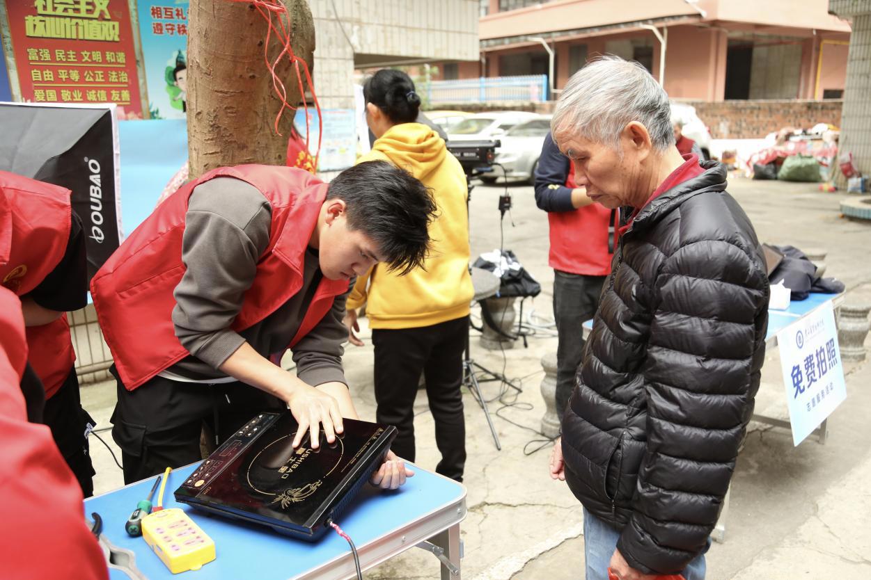 活动现场,志愿者们发挥自己的专业特长为居民提供清洗空调、维修家电、民族美食品尝、寸照拍摄、清洁楼道等多项便民服务。
