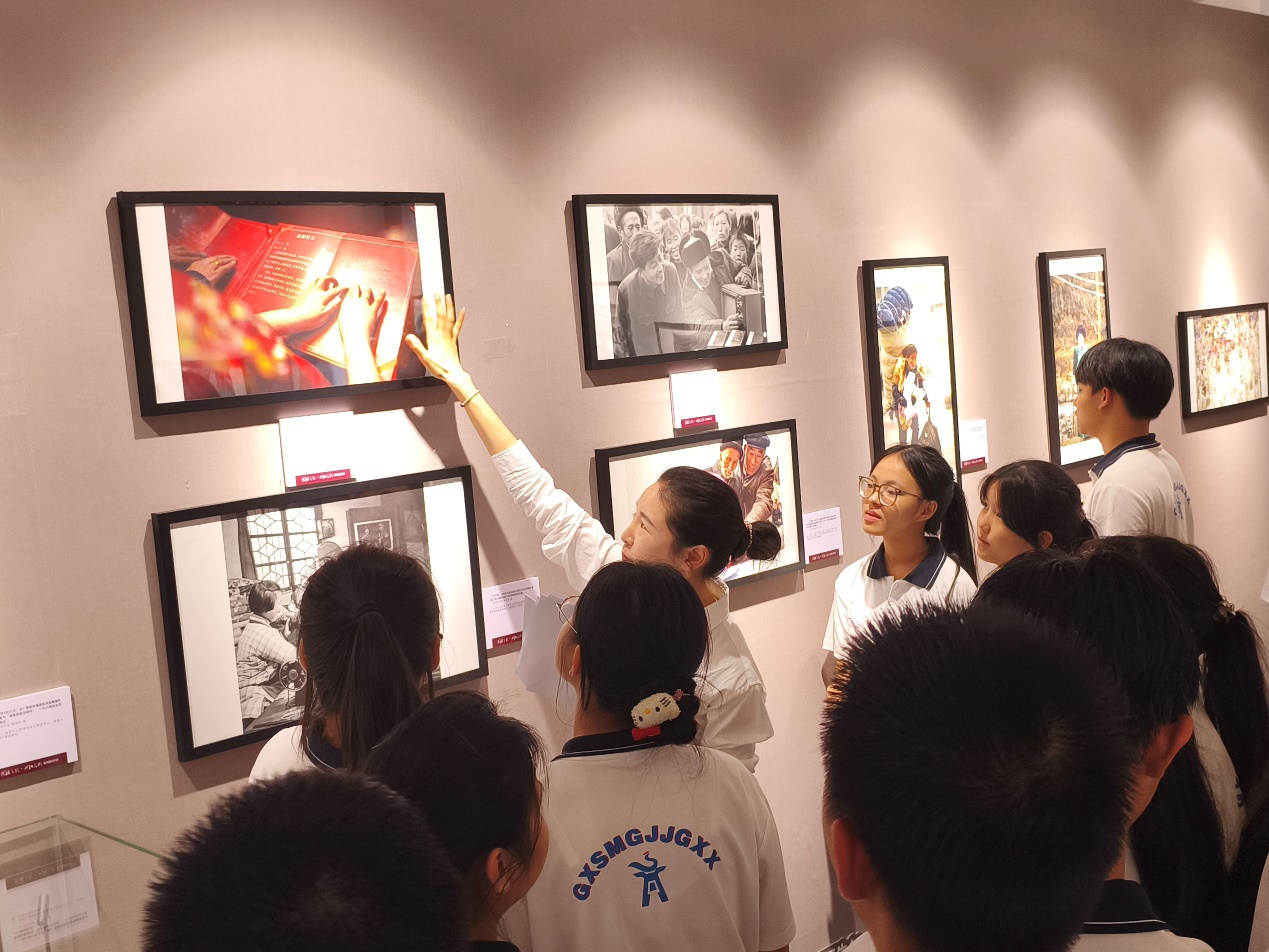 以影为媒,重温峥嵘岁月。本次摄影展以“铸牢中华民族共同体意识”为主线,通过“浴血新生”“中国风采”“壮美广西”等12个系列作品,生动展现了中国共产党团结带领各族人民从革命烽火走向伟大复兴的壮阔征程。在讲解员的引导下,团员青年们驻足于一幅幅珍贵影像前参观,深刻体悟红色足迹不仅是历史的见证,更是激励当代青年接续奋斗的精神火炬。
