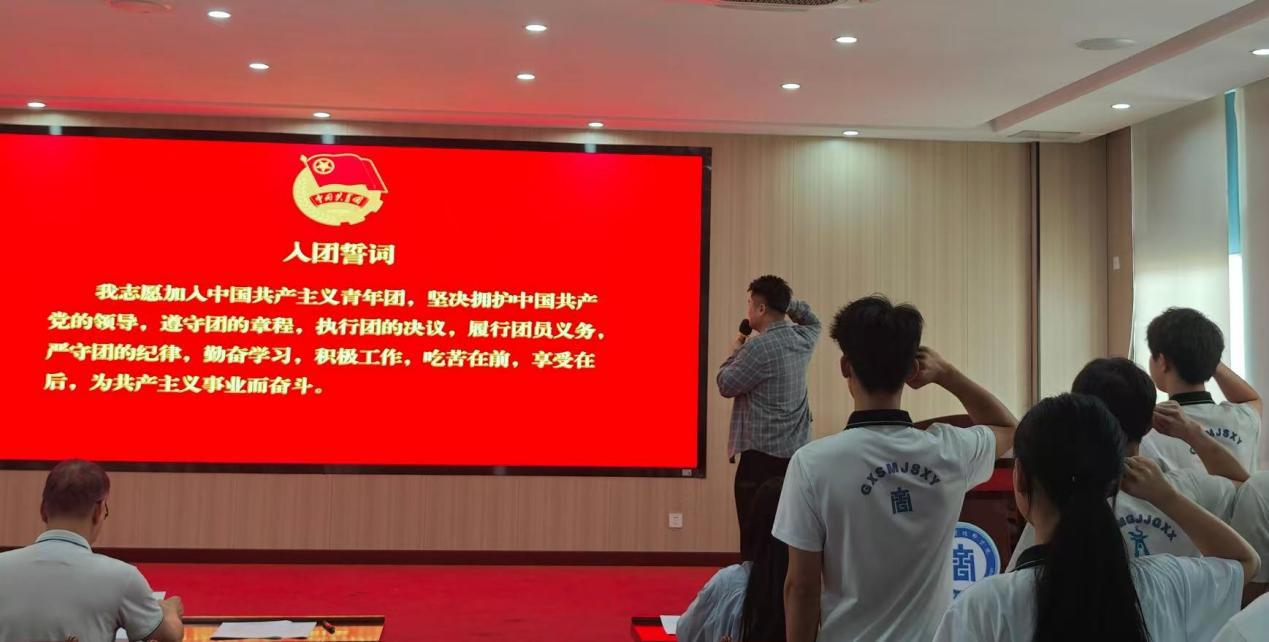 团委副书记莫荣笙带领团员代表重温入团誓词